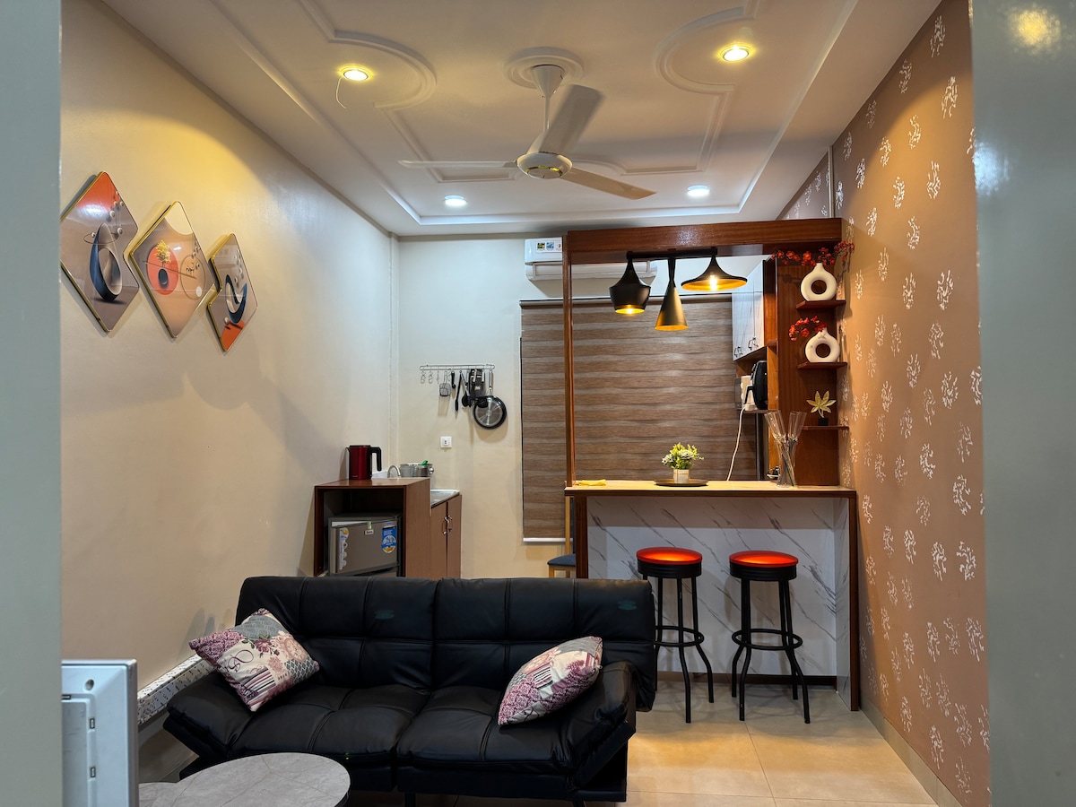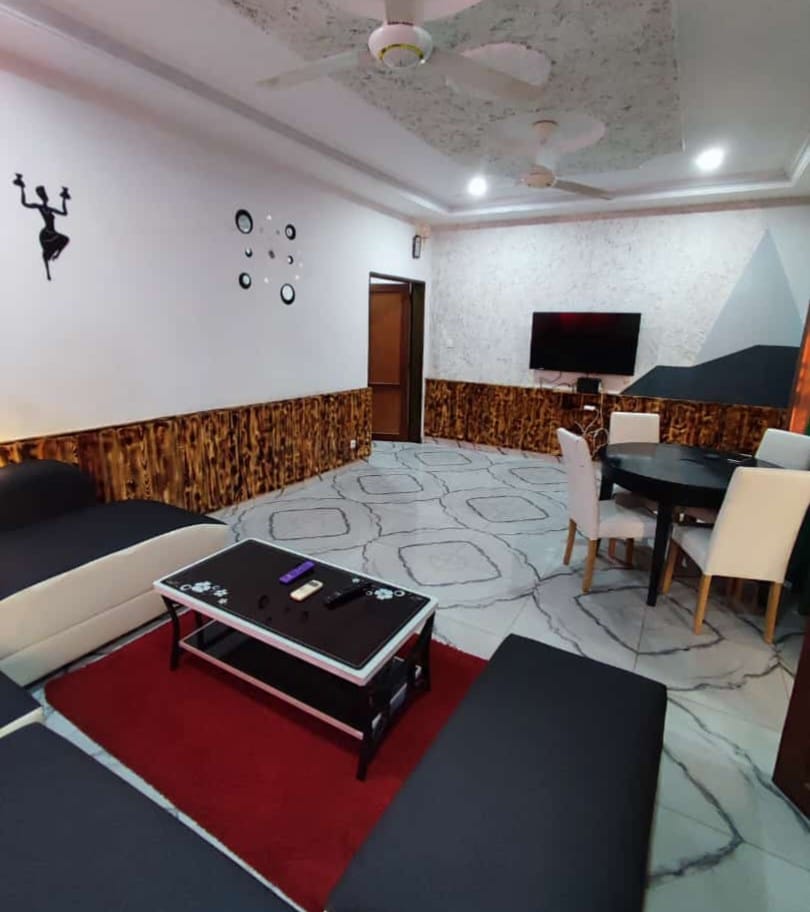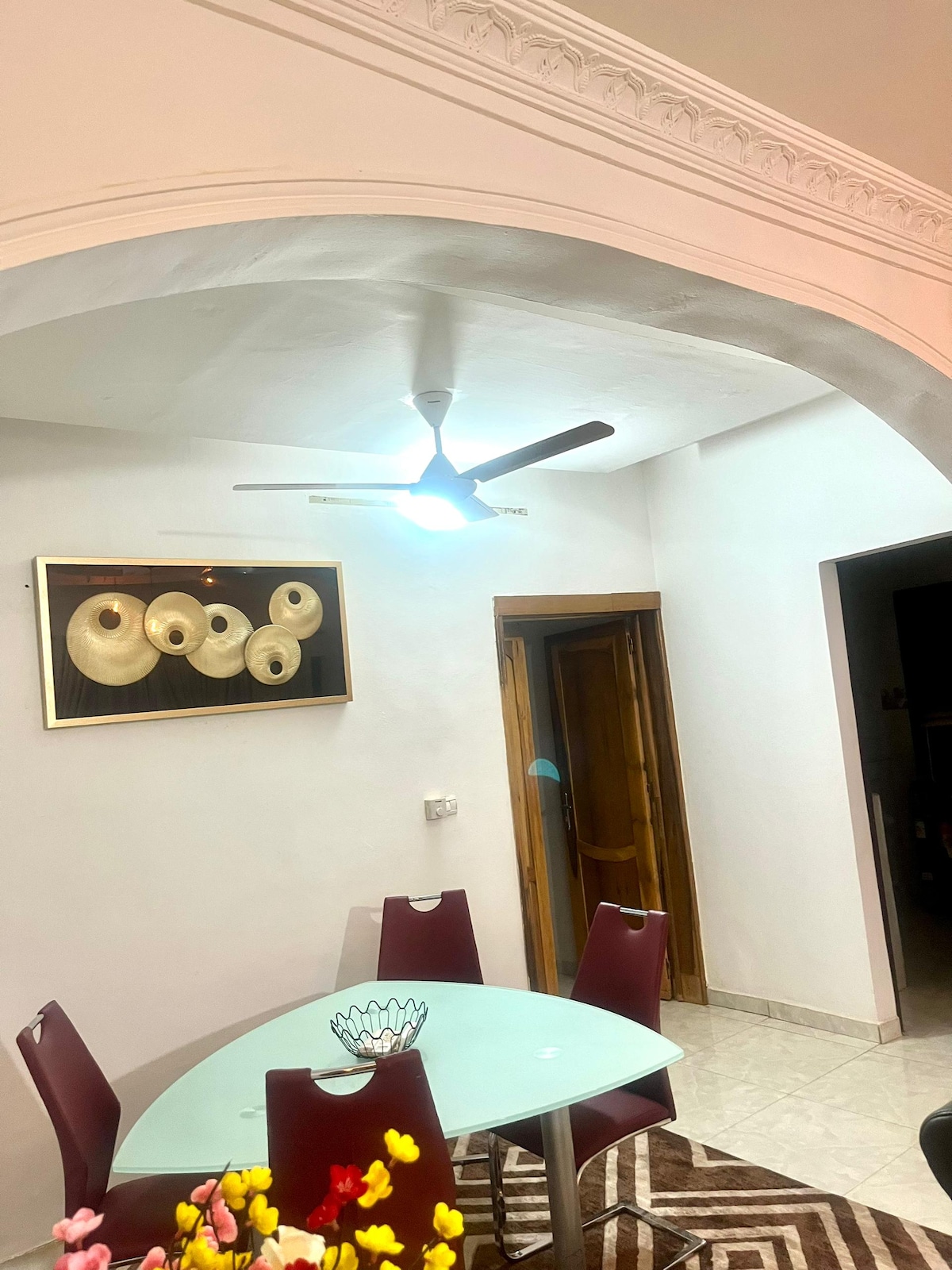 Découvrez notre appartement deux pièces, une alliance parfaite entre tradition et modernité. Profitez d'un séjour spacieux de 18 m² et d'une chambre climatisée de 12 m² avec placard intégré. La cuisine est entièrement équipée avec four, micro-ondes, réfrigérateur, vaisselle et couverts. Pour votre confort optimal, l'appartement est climatisé et autonome en électricité grâce à un groupe électrogène en cas de délestage. Bénéficiez également du Wi-Fi illimité et de Netflix pour vos divertissements.