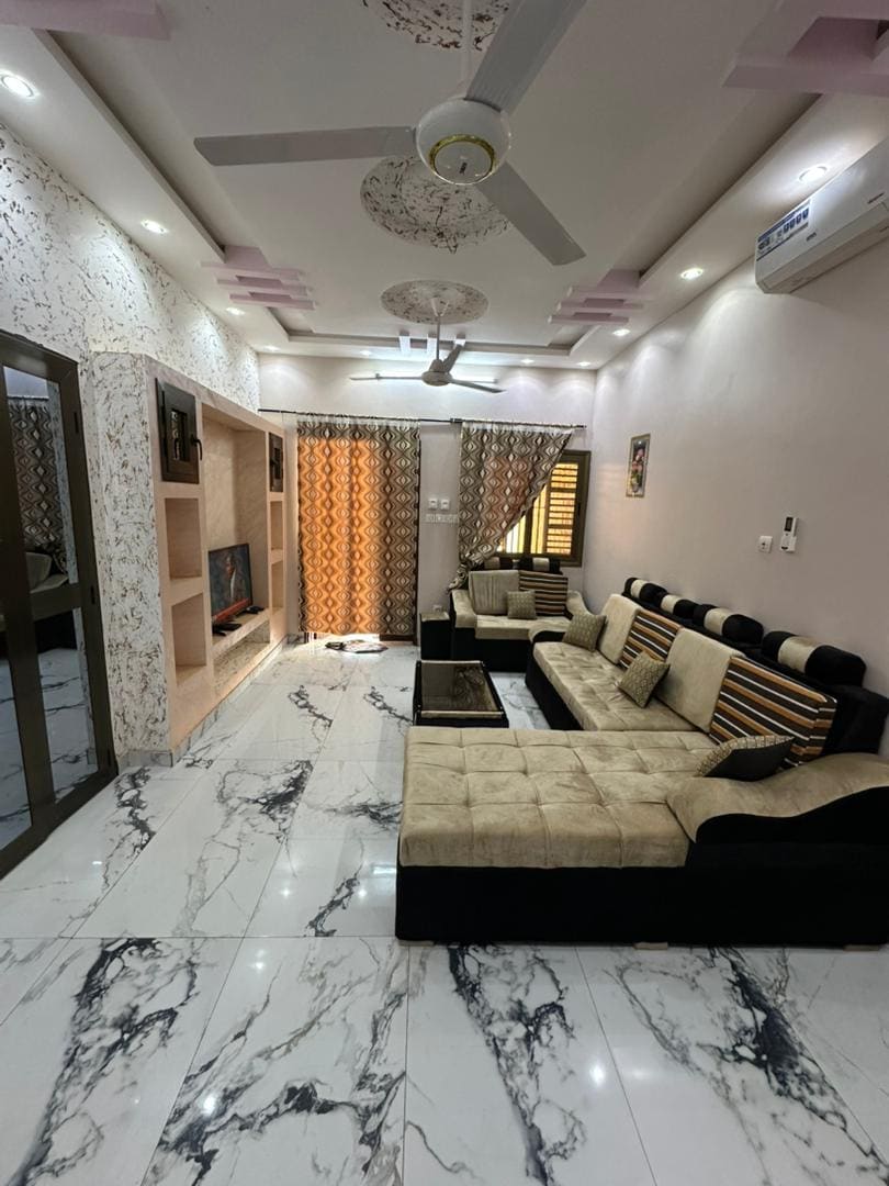Discover this spacious home in Ouagadougou, just 5 minutes from the Universalis complex school. Ideal for families, friends, or business travelers, it offers three cozy bedrooms, a living room with a 65-inch TV, a terrace with a lovely view, and four bathrooms (three indoor, one outdoor). Enjoy a large courtyard, high-speed Wi-Fi, a washing machine, cleaning service, and a nighttime security guard for a comfortable, worry-free stay. Book today and experience the comfort in the heart of Ouaga!