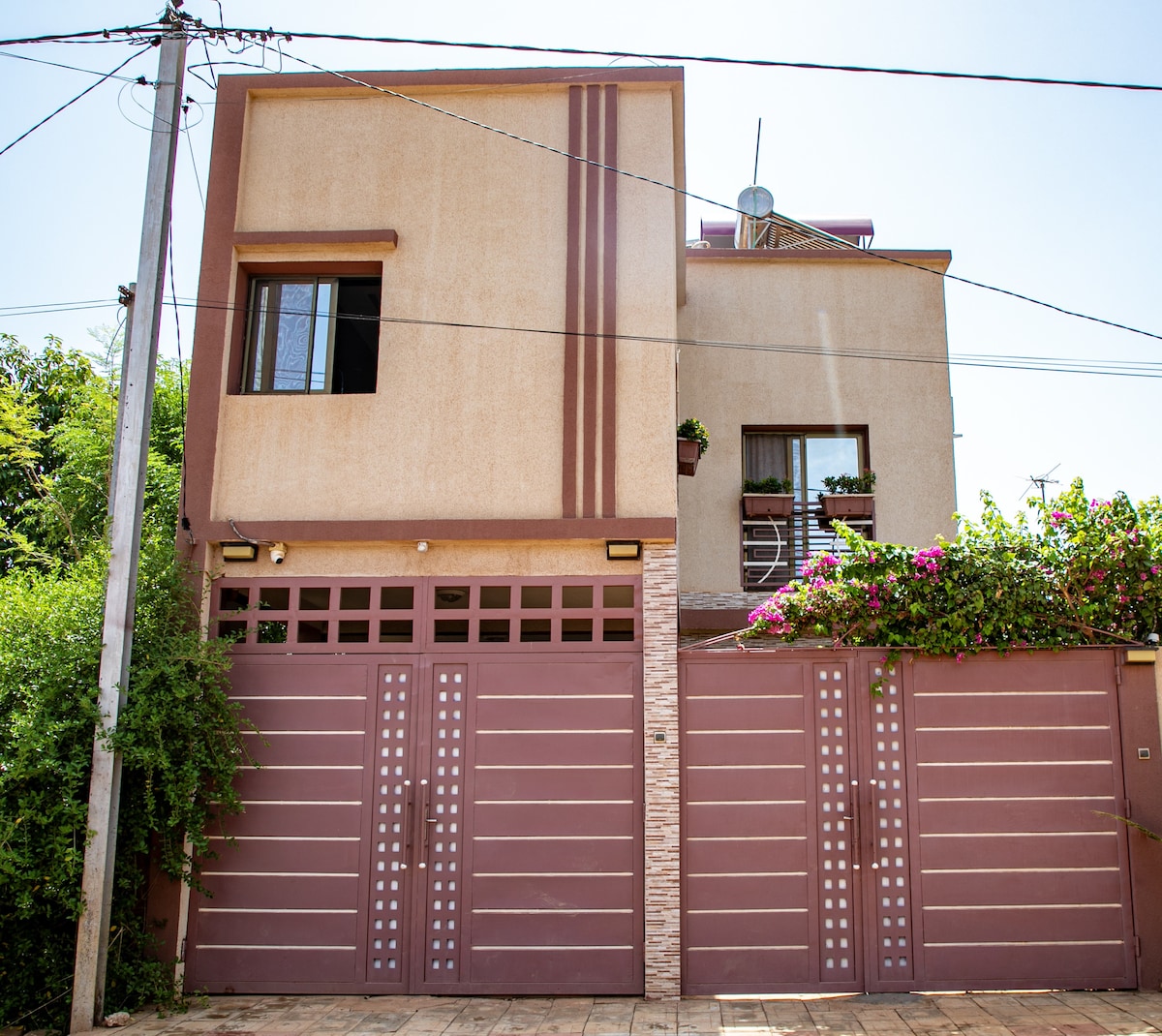 Beautiful, large family house on the outskirts of Ouagadougou, built using local materials (compressed earth bricks BTC) and equipped with a Polytank and solar water heater. The house has been designed to provide cool, airy spaces: a thick outer wall, a patio inside, a large covered terrace and a balcony upstairs. Ideal for family holidays, weekends away, business trips, etc. The courtyard is planted with trees (mango, coconut, guava, lemon, etc.) and flowers.