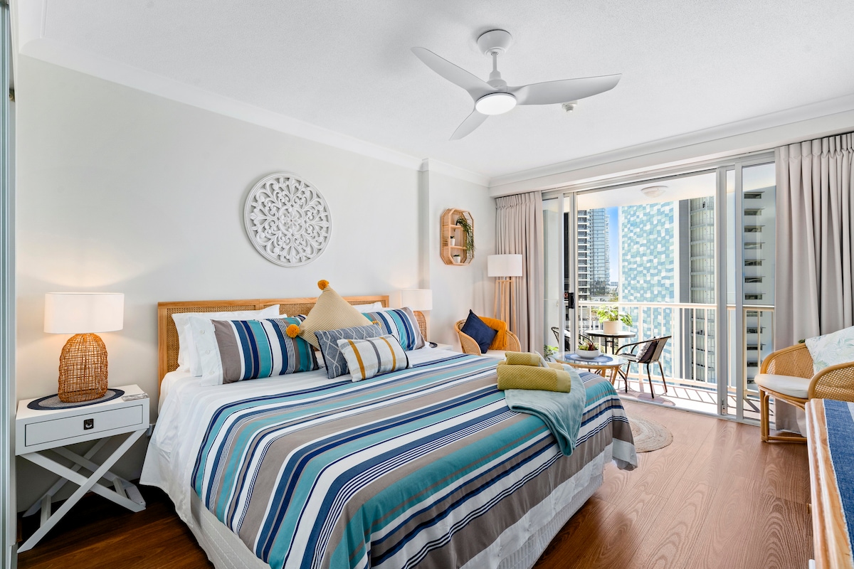 Stylish High End Hotel Room in Legends Hotel at 25 Laycock Street with Great Ocean Views, King Bed & kitchenette. Location is just steps from the Beach & all Restaurants and shopping in Cavill Ave. Includes Unlimited Internet/aircon/ Heating /TV with youtube (& Netflix if you have an account)/ Fridge/ Hot Plate / Pots/Toaster/ Microwave/ Plates /Cutlery. All photos here are of this exact room. (So you can be sure you won't end up with a room facing the street.) Check out reviews!