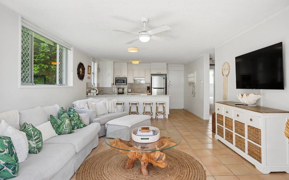 Note: Sleep-out (4th bedroom) is only included for groups of 7+ guests. Groups of 1–6 receive a lower rate and can access 3 bedrooms, with optional access to the sleep-out for an additional charge. This spacious 3 bedroom + sleep-out, 2 bathroom home sits on scenic Palm Beach canals with pool, private beach, jetty, fire-pit, and views of Burleigh Headland - all within walking distance to the beach. Main living & sleep-out have split-system A/C; 3 bedrooms have in-window A/C and ceiling fans.