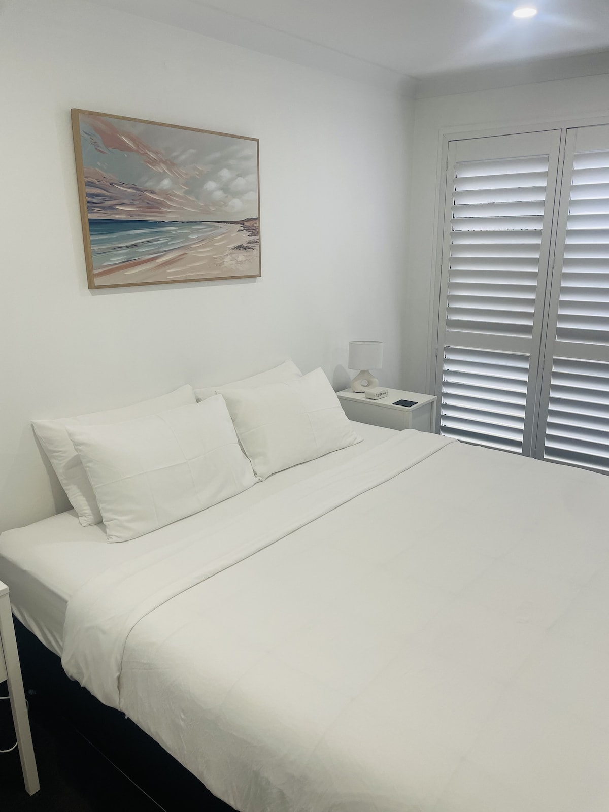 This is a beautiful place directly across the road from the beach. It's a brand new studio space on the bottom level of a multi million dollar home. You have private entry access with all the amenities you need. There’s cafes and restaurants only minutes walk away. There’s a kitchenette with microwave, small fridge and all the other basic kitchen appliances you’ll need. King bed, and a portable cot, air con/heater, washer/dryer, bath, shower, toilet and a large wardrobe.