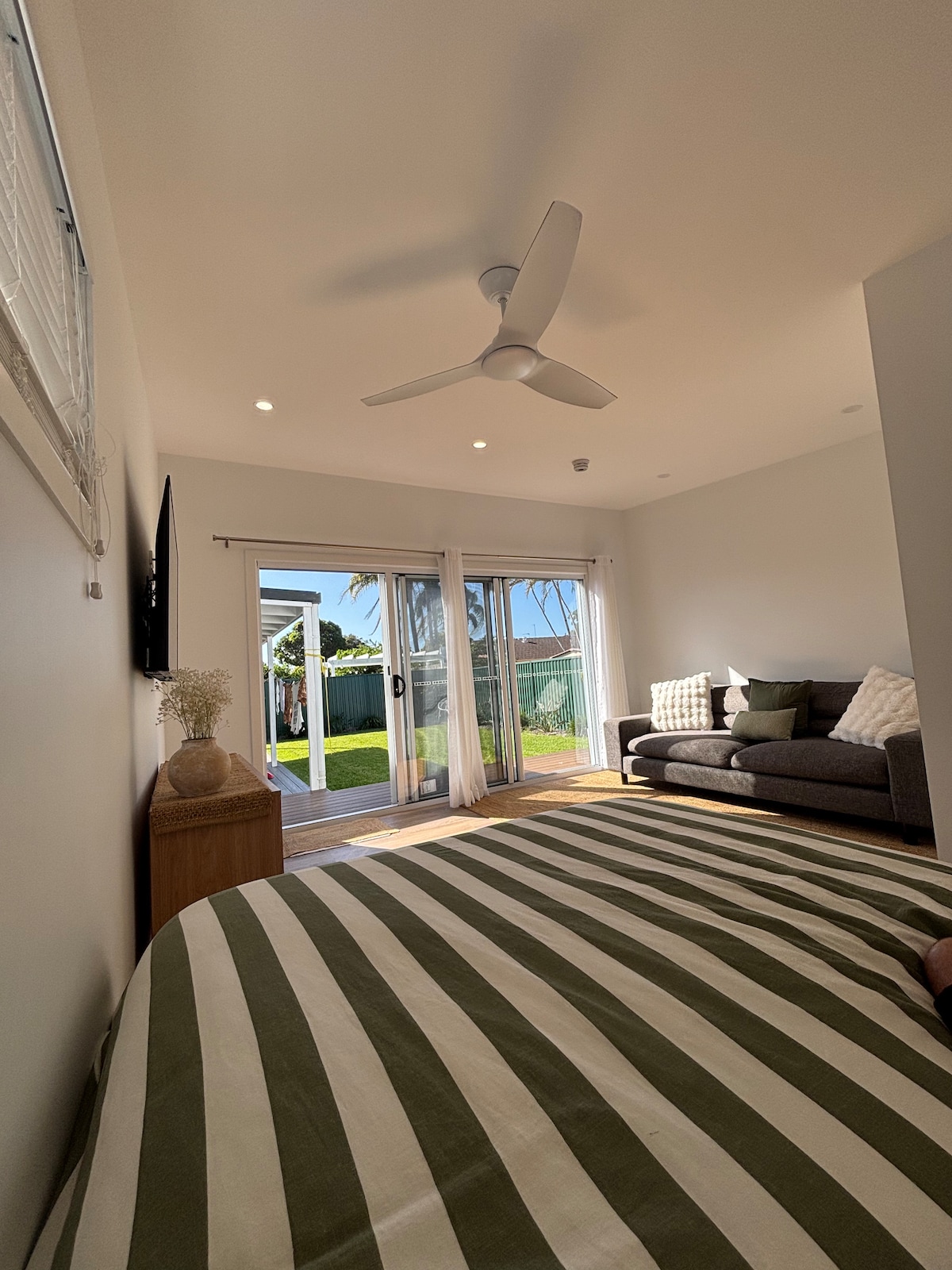 Coastal oasis five minute walk to the beautiful Tallebudgera Beach. This is a brand new Hamptons, coastal style two story house. The space has been designed with double sound proofed walls and an air tight door, for maximum privacy. A self contained, clean space with everything that you need for a blissful nights stay. Complete privacy with your own gated, locked street entrance. Whether your here for a holiday or work this is a home away from home. Time to relax and unwind, in total privacy.