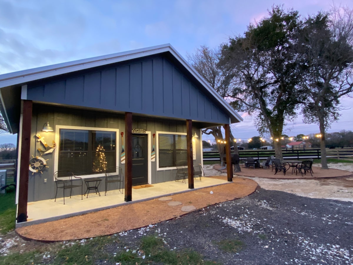 Pirates Cove Tiny House shares a shady hideaway with 5 other Tiny Houses. The perfect cozy spot for guests visiting for business or pleasure and walking distance for Wedding Guests of Circle C Barn Venue. This unique place has a style all its own. We are Dog Friendly. Our Per Dog fee is $50 per stay. Longhorns are in a fenced in area for guests to enjoy and view at a distance - stay back 10' from the fence.
