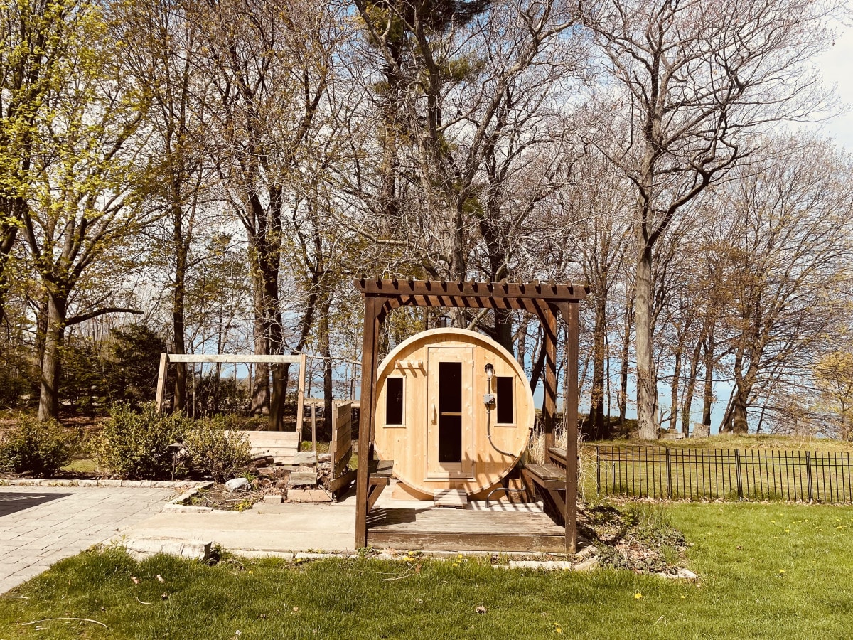 WOOD BURNING SAUNA ⭐️ONE OF A KIND, 1800 sq. ft BARNDOMINIUM on 18 acres of total privacy! Serene, country getaway in the picturesque countryside of Erin⭐️Full-size kitchen,harvest table,spotless bathroom, couch & chairs set infront of the floor to ceiling glass doors⭐️Cozy loft with tv, comfy queen bed & oversized couch. ⭐️Soaring trees & trails,grain bin bar on concrete pad with fire-pit, tables & chairs.Wood deck with patio set.Separate cabin with double bed. You won’t want to leave!