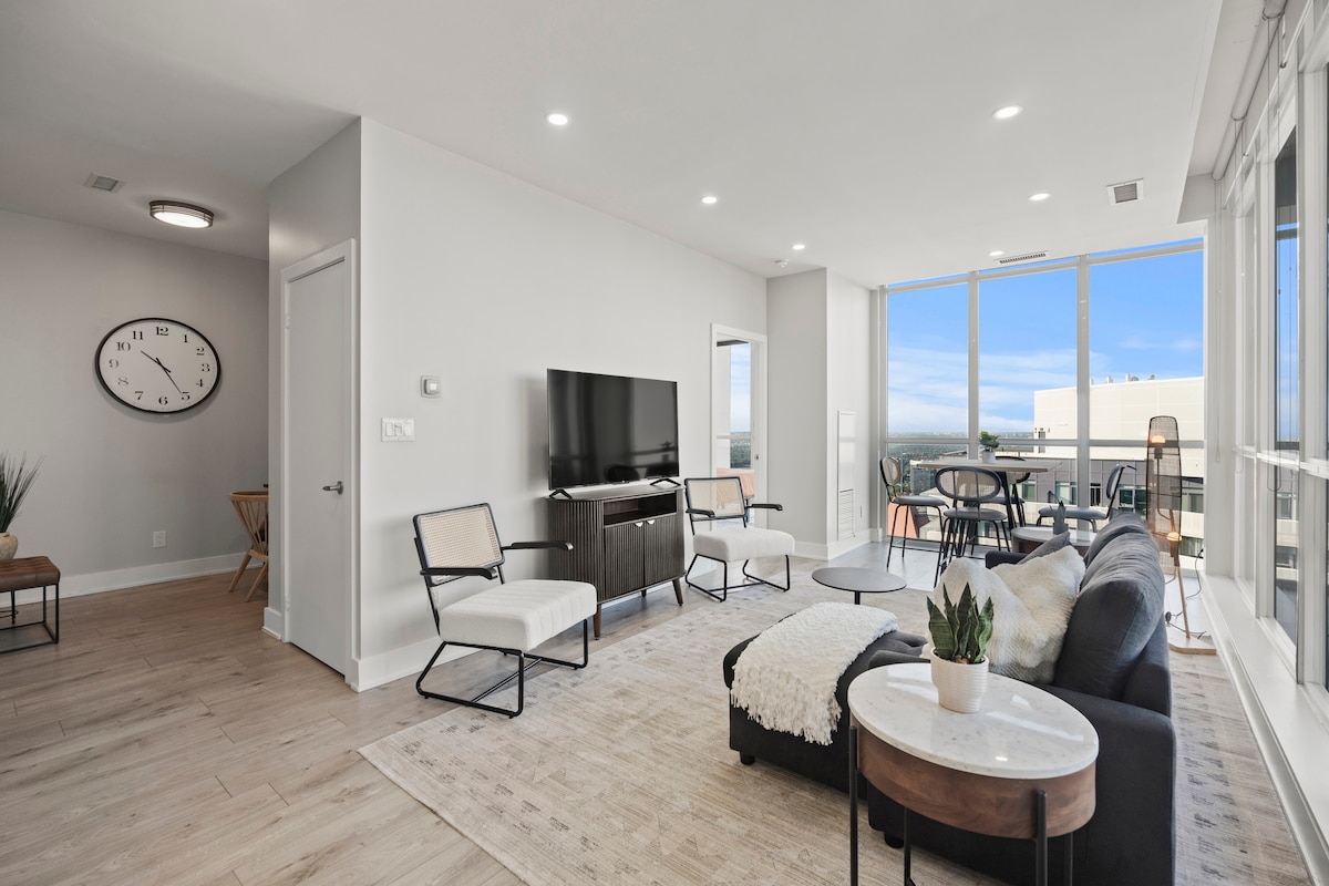 NEW GORGEOUS LUXURY CONDO WHEELCHAIR ACCESIBLE. *** NEW BED in 2nd!*** PRIME BEDROOM has a queen size memory foam mattress & a desk. SECOND BEDROOM has a brand new bed with double mattress medium/firm and a working desk, now accessible to guests. 2 FULL BATHROOMS: The en-suite has has a step up shower and a Bidet. SECOND: Has a tub & shower, very spacious. *OPEN CONCEPT LIV. AREA. *OPEN BALCONY. TASTEFULLY FURNISHED, SOFT AND CLEAN COLORS HARDWOOD FLOORS THROUGHOUT EXTRA WIDE HALLS AND DOORS