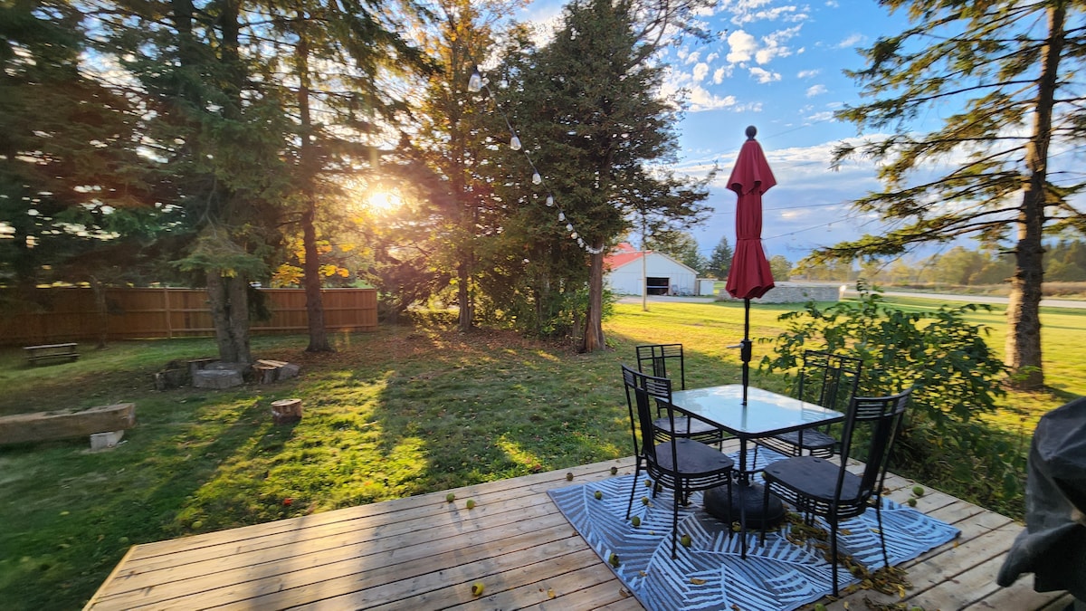 OPEN TIMESLOTS MARCH 24 (1 night/2 days) MARCH 27-30 (3 nights/4 days) APRIL 1 (1 night/2 days) Please mark this listing as a favourite to get notifications of last minute deals. Unwind at our cozy guest house. Beautiful 2-bedroom cottage. Enjoy the direct waterfront views from the living room, bedroom and wrap around composite deck. Outdoor fire pit and BBQ. Set in vineyards, peach, nectarine and plums. Close to wineries & shops. Free Tesla charging. Views from the cottage include: Lake