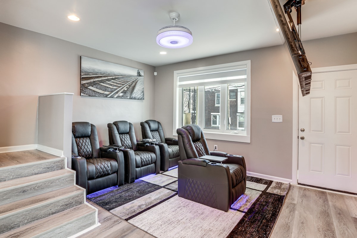 High-End Furnishings | 80” TV w/ Theater Seating | Full-Size Washer & Dryer Discover an elite urban escape at this incredible Philadelphia vacation rental! ‘The Blue Room’ sets the stage for your stay, with floor-to-ceiling Italian marble, an LED-lit shower, and a 100-inch screen for the ultimate movie night. Whether you’re sipping drinks at the bar or soaking in the private jacuzzi, this 3-bedroom, 2-bath townhome is a true luxury retreat. You won’t find another place like this hidden gem!