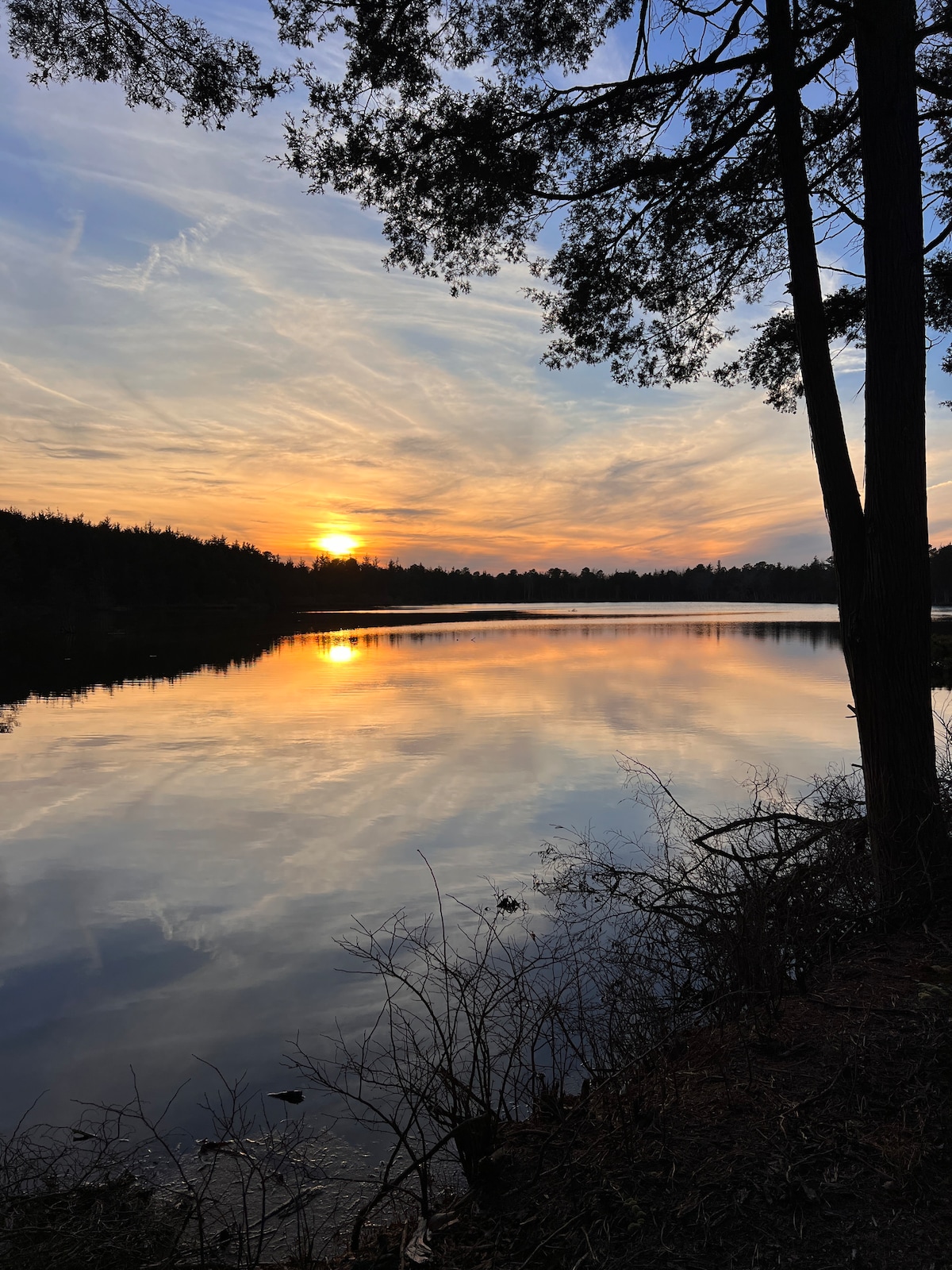 Whimsical Winter is here. Fire🔥pit is ready. Winter season at the lake is special. Chalet booked? Check out our Lakeside Cottage next door. Both have magnificent views of scenic wildlife & the Lake . Paddle through the wilds of our upper lake. Explore the Egg Harbor River ecosystem. Paddle boat use is gratis. Canoe, paddles & safety vests available for $20 day or $50 entire stay. Atlantic City and Philly just 30 miles away. Wrap around deck puts great outdoors just outside the lakeside patio.