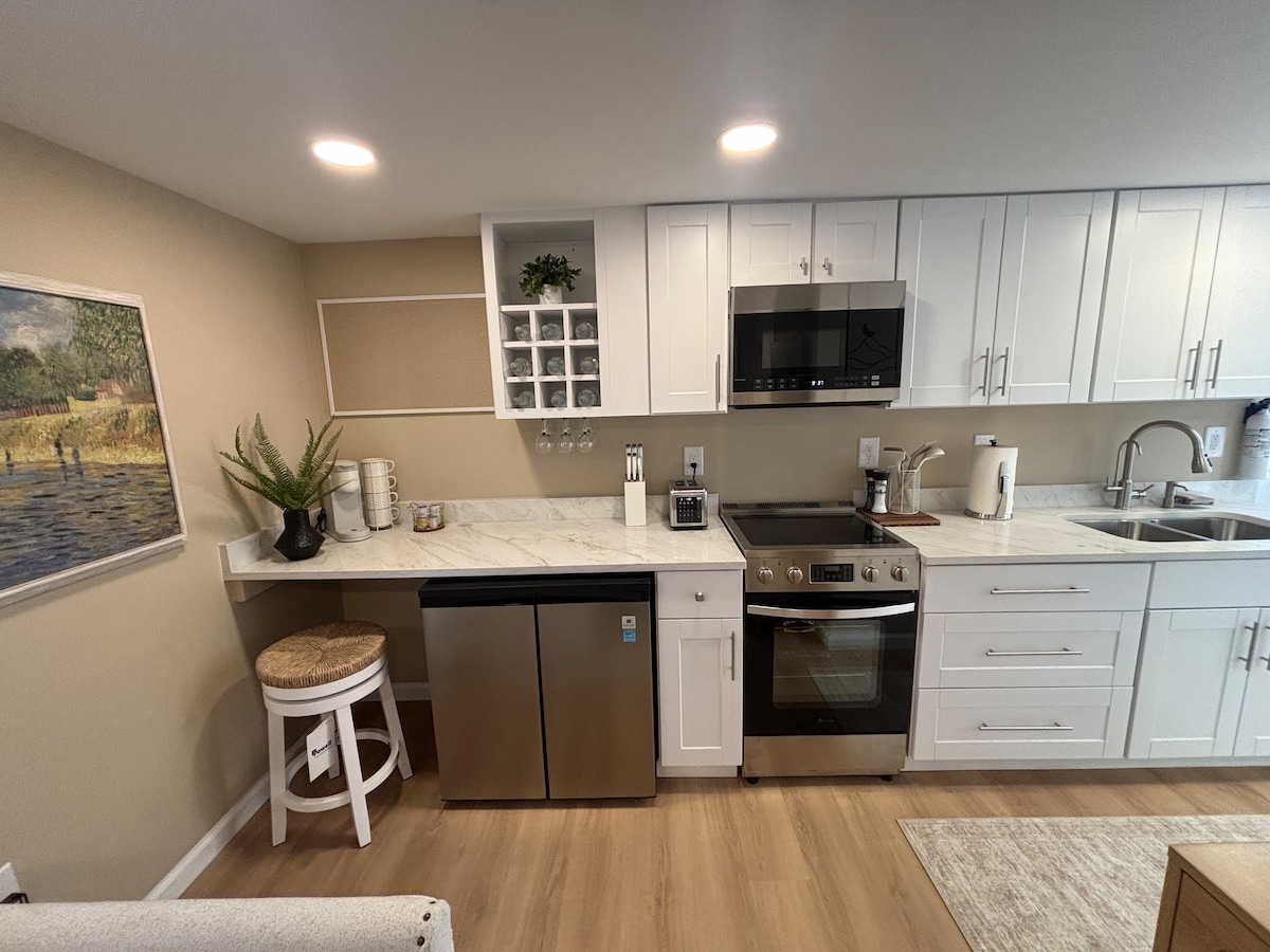 Step into this beautifully decorated 275-sq-ft studio tiny home designed for comfort and style. Enjoy a full kitchen, workspace, washer/dryer, two TVs, and a spa-like bath with a three-head shower. Just steps from the Rancocas Creek, this private retreat feels bright and spacious. Every detail—from the décor to the layout—creates a peaceful, memorable stay for one. Fully renovated in November 2025.