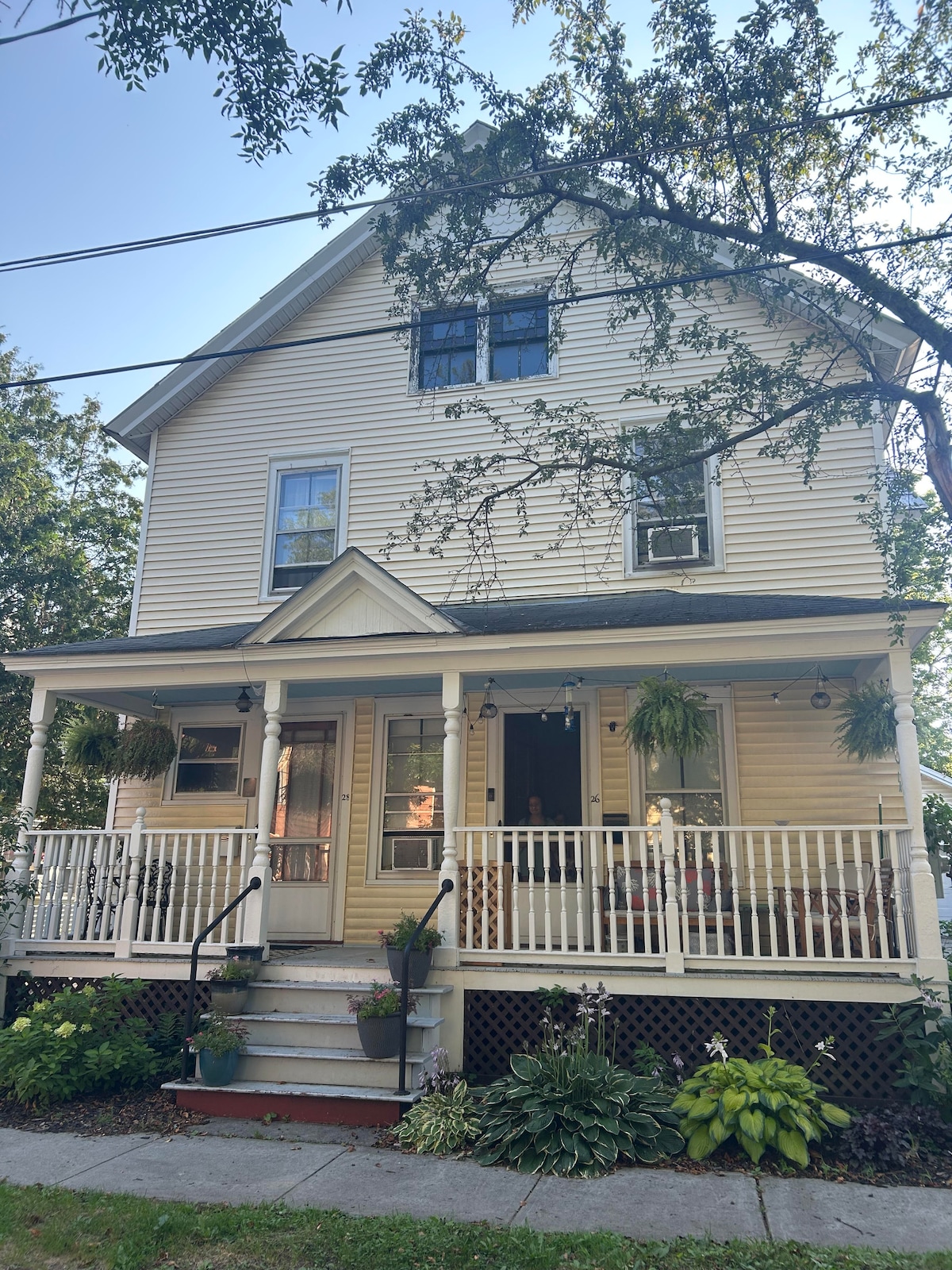 Our spacious tranquil top floor studio is newly renovated and thoughtfully designed. A large space with a luxurious queen bed, sitting and dining areas, as well as a quiet work space. Whether you are here for a weekend getaway, to attend a college event, or in town for work you will find our space fits all your needs. We are perfectly located on the edge of downtown, within minutes walking to Church St, the scenic waterfront, colleges and the hospital. (Note: there is not a full kitchen)