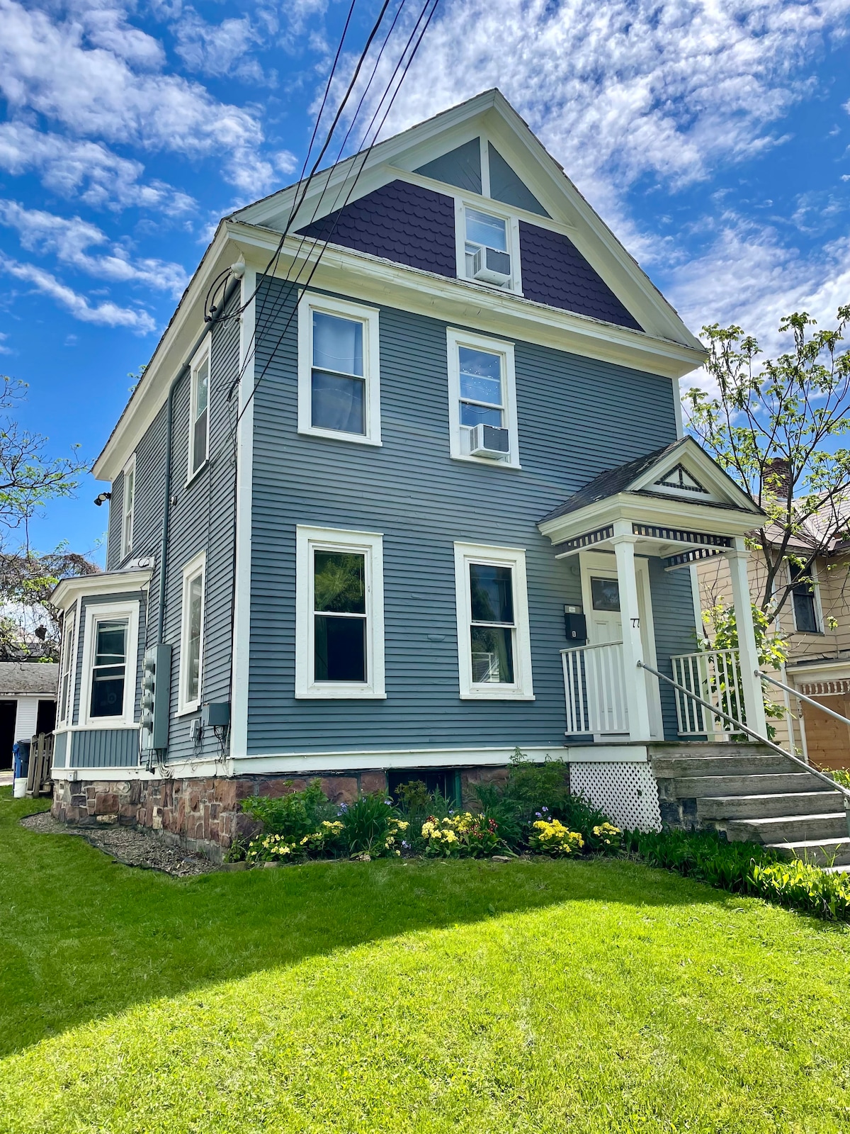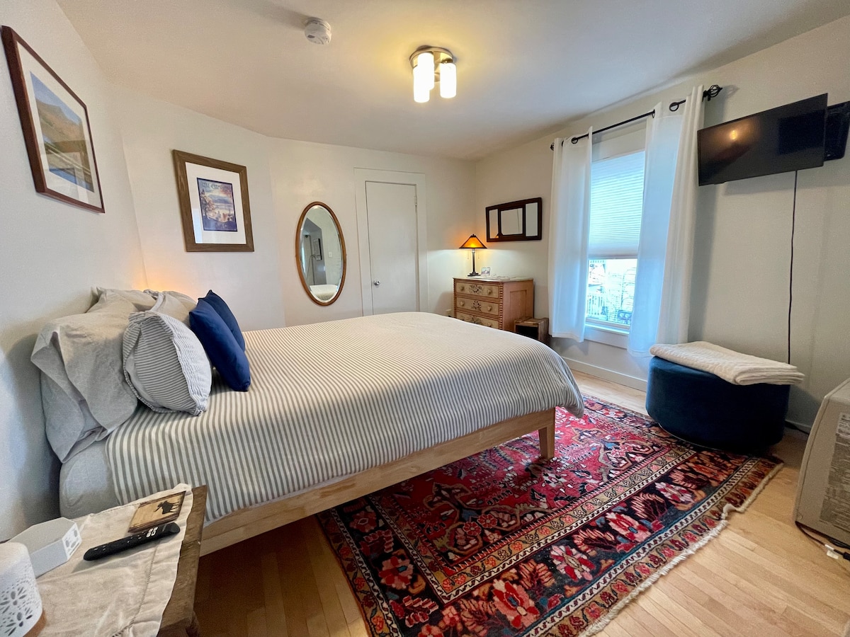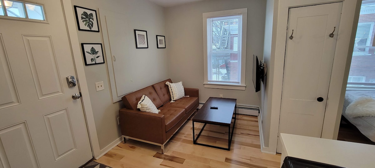 Downtown Burlington! Completely renovated 1 bedroom apartment in historical 1845 house. New kitchen. open floor plan, super comfy futon if you need an extra bed. Bathroom with modern feel juxtaposed with a classic claw foot tub. Brand new amenities with a touch of historical flair: high speed wifi, 65" tv, hardwood floors through out, AC and heating controls. 7 minute walk to Church St. Close to UVM and Champlain College. 1 off street parking spot.