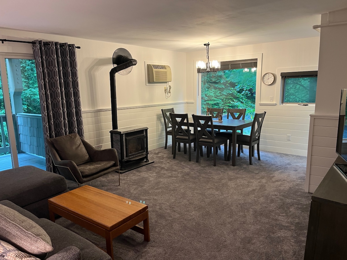 Enjoy a top-notch experience at this newly renovated townhouse with free access to outdoor pools and hot tub and fire pit. Located 5 minutes from mountain! Take in all the amazing mountain air :)) For access to spa, indoor hot-tub with waterfall, indoor pool, steam, sauna, Fitness Center and shuttle to the ski resort a day rate of $78 fee is required (maximum of 6 people) additional guests may be added at $25 per day per guest. Also included is first come first serve activity court.