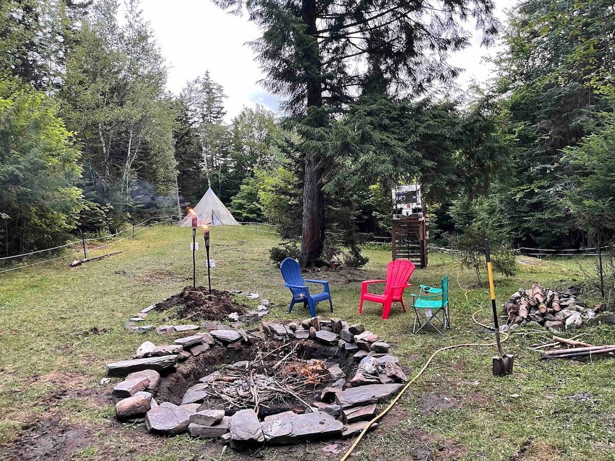 Glamping- Camping in a fully weatherized screen house overlooking the waterfalls on the grounds of the Historic Starksboro Millhouse. New fullXL 10 inch cooling memory foam mattress/ bed certipur certified. We provide single or double LL Bean flannel sleeping bags . No gear . No problem. Hot shower. Private toilet. Grill. Outdoor kitchen. The perfect retreat or romantic getaway for two. Third person ok if it works as a double and single