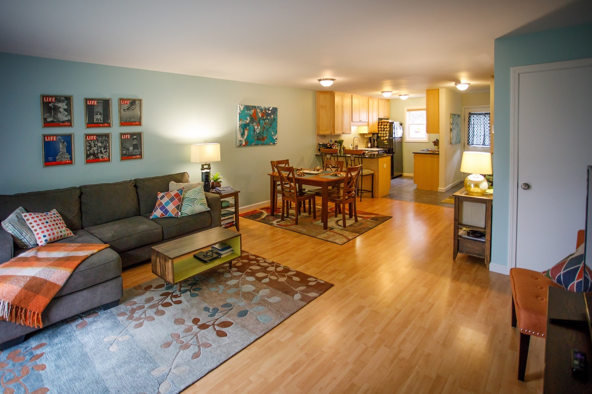 Treat yourself to a unique stay in this open and airy South End loft apartment, featuring all the space, amenities and luxuries you need for a restful and refreshing getaway. Fantastic location in the heart of Burlington, VT - steps from City Market, breweries & parks. High ceilings, comfy nooks, beautiful light, a cozy day bed and epic year-round birdwatching from the large back deck are a few of the many highlights at The Treehouse. 5m to Downtown, 89, Rte 7, beaches & more!