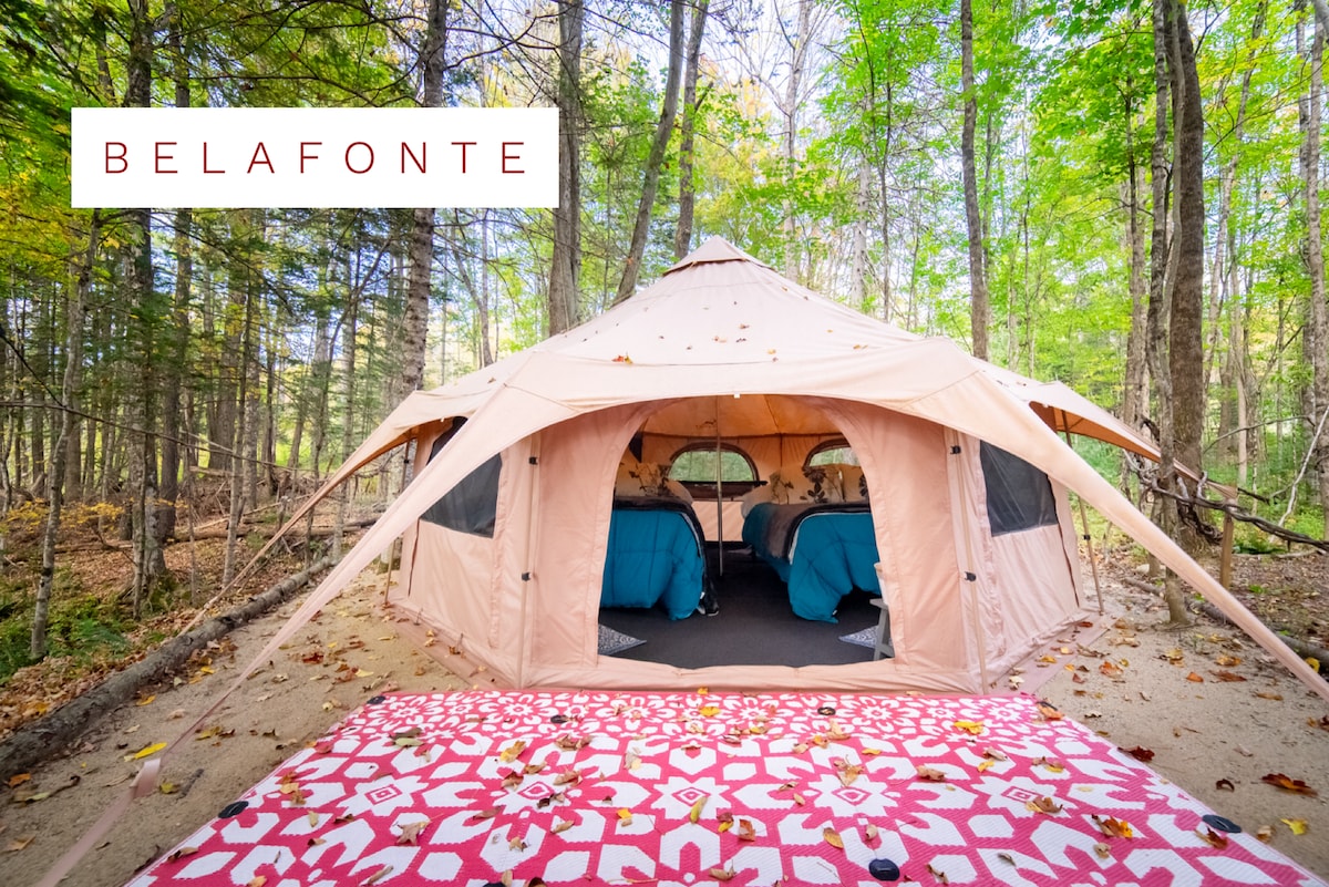 Say hello to our very first glamping tent at Shady Oaks Camping Resort—The Buckminster! Named after Buckminster Fuller, the genius behind the geodesic dome (and a guy who definitely knew a thing or two about thinking outside the box), this cozy retreat blends outdoor adventure with indoor comfort. Think starlit skies, crisp air, and all the creature comforts you love—no sleeping bag required. It’s camping... for folks who like s’mores AND mattresses.