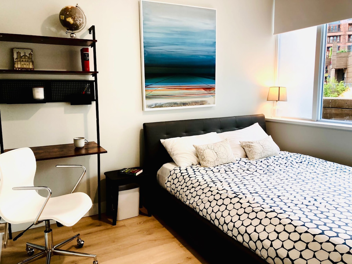 Unbelievable views of water, city and mountains! It is a waterfront retreat, in a gorgeous location, walking distance to Granville Island, Olympic Village and Broadway. Steps to bike and running trail (a.k.a the seawall). One underground parking space is included. (Max Height 6’8’’ but nearby parking if your vehicle is higher than standard) We live in the adjacent room and upstairs, and available to help you with any questions or local tips.