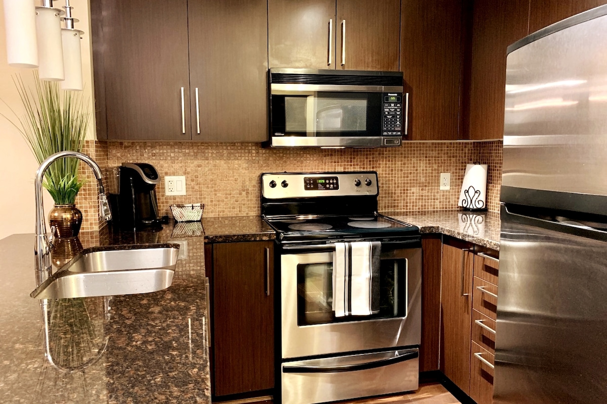 全新、现代、干净的豪华单间公寓套房,配备空调!