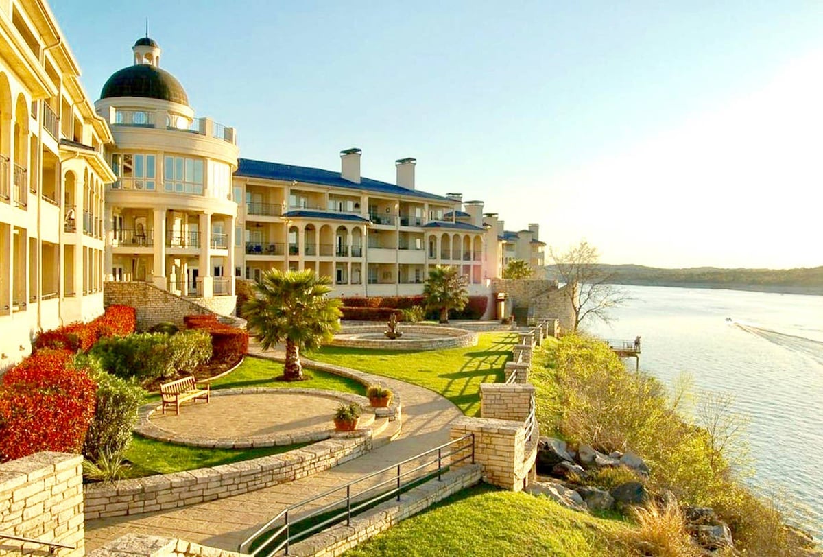 Welcome to the Bella Lago condo on the Island of Lake Travis! An elegant, gated resort offering luxurious Lake Travis waterfront accommodations on a 14-acre island. It’s the perfect spot for a relaxing romantic escape with breathtaking lake views. Enjoy a spacious balcony featuring an outdoor entertainment bar, cooler, TV, wine barrel bistro table, and electric grill, all while taking in stunning views of the hill country. Due to recent rain, we now also have a lake view from our patio.