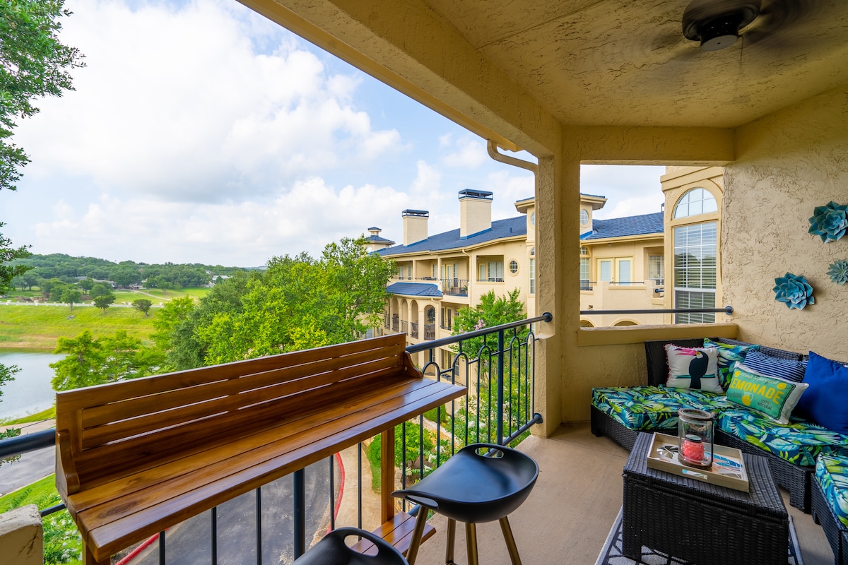 Come spend your precious time in luxury at the Island! Watch the sunset from your own balcony! There is a beautiful lake view from your balcony! Amenities are up and running at normal hours including the sauna and locker rooms. On site Spa is OPEN!! Restaurant on site is open and delicious with limited hours. You can relax, unwind or work from home on the quiet balcony overlooking the best view of Lake Travis. Resort living at it’s best! Must be 25 yrs or older to book.
