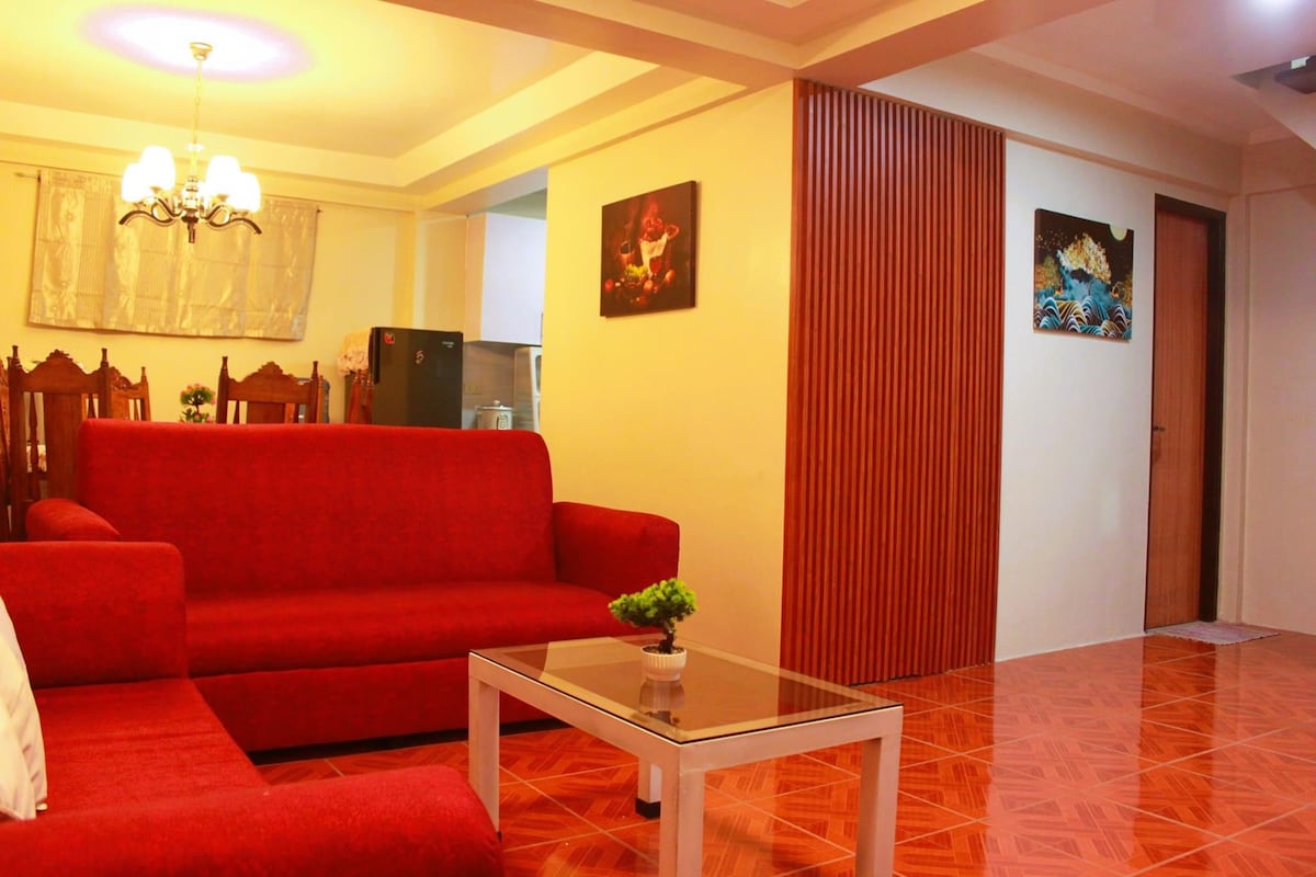 Before booking, PLEASE KINDLY READ our details. 😊 Why you should book now. 👉 Family-friendly 👉 Cozy & modern 2 bedrooms with convertible living room 👉 1 Full Bathroom 👉 HI-SPEED WIFI 👉 Two 4K TVs: 50” (living room) & 43” (bedroom) w/ NETFLIX & Disney+ 👉 Full kitchen 👉 Balcony w/ STUNNING CITY & MOUNTAIN VIEW 👉 Near City center 👉 2-3 min. to John Hay & Victory Liner Bus 👉 Impeccably clean guesthouse! 👉 PARKING FOR 1 CAR/VAN ONLY N.B.: Strictly maximum of 6-8 pax