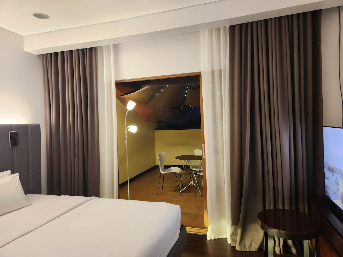 You wouldn’t want to miss this unique, charming, one-of-a-kind place located in a quiet, tranquil & quaint corner of the city… yet close enough to interesting places usually loved by tourists and locals alike. You’ll stay in a 33.2sqm studio condo unit with double & single-sized Murphy beds, stunning sunset & amazing cityscape balcony views. You’ll enjoy a welcoming, air conditioned place equipped with wifi suited for reviewees & WFH, study/work desk, own toilet, hot/cold shower, kitchen & more.