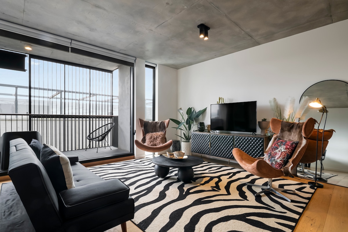 Have a drink on the balcony of this quiet, one-bedroom apartment and discuss the plans for the next day. Inside, enjoy open-plan living and an understated, modern style. The central location is ideal for exploring nearby theatres or shopping. Stylish desk and office chair if you feel like doing a little work.