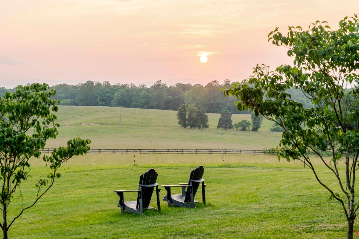 An adorable home with breathtaking sunsets over the Blue Ridge mountains. We are 4 miles to downtown and minutes to many vineyards, shows and restaurants. Enjoy comfortable beds, the fire pit with Adirondack chairs, big skies filled with stars and animals. Walk our country roads, feed the horses, enjoy the views of the mountains and meadows. Base price is for 2 people, no pets or children under 8 for safety. Stays more than 3 nights will have an added cleaning fee of 20.00