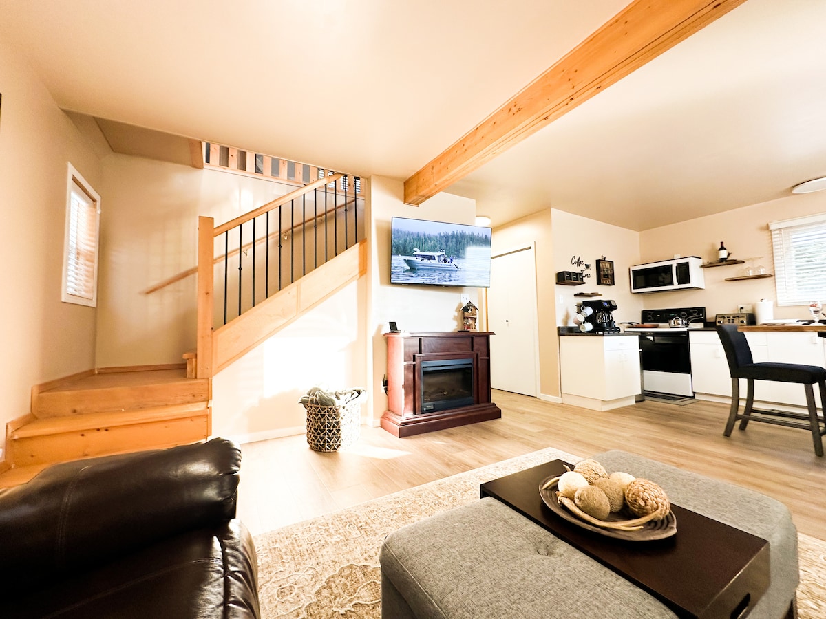 Newly renovated suite located in Burns Lake close to Boer Mountain bike & walking trails. Open concept 800 square foot suite with a queen bed and additional queen Murphy bed. Kitchenette, laundry, 50” smart tv with fibre optic tv and internet, comfortable seating . Spacious backyard with fire pit area and BBQ available.