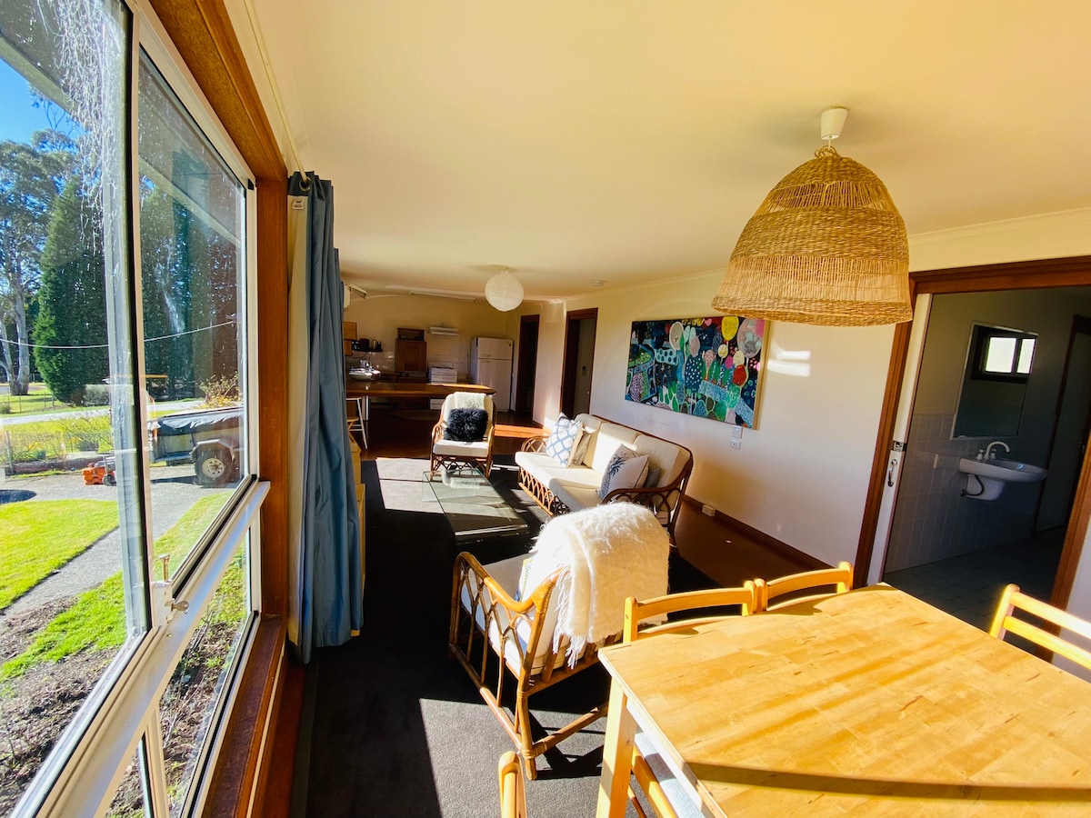 Free standing one bedroom cottage with large windows overlooking paddocks dotted with kangaroos. Situated 10 minutes from Berrima and Bowral - very handy for wedding guests. On the Southern Highlands Wine Trail. A quiet and tranquil getaway. Compressed/recycled cement driveway, suitable for all cars. Native Ducks, Kookaburra's, Eastern and Crimson Rosellas, Kangaroos and Wombats in abundance. Wood fired heating or air conditioned and wi-fi (Star Link) connected.