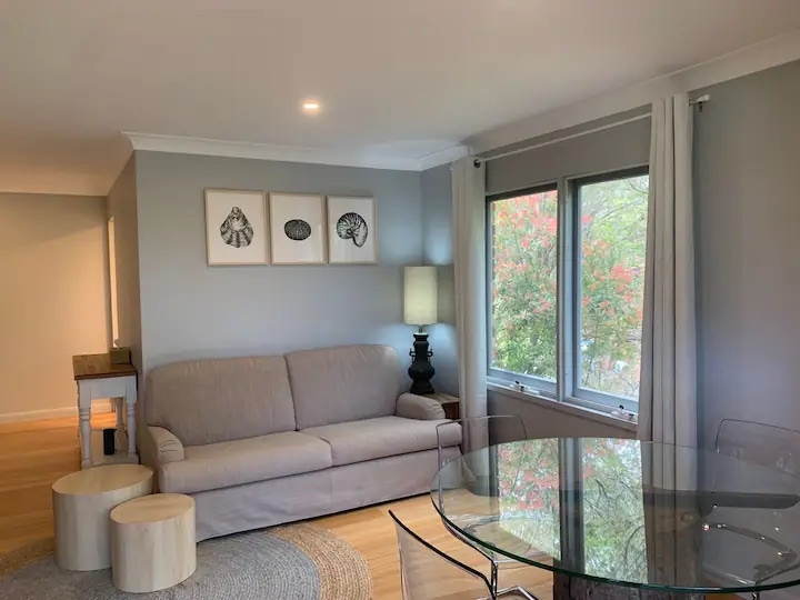 Welcome to Burrill Bungalow — a couples retreat for those who love relaxed coastal living. Privately tucked behind our home and surrounded by tropical palms, this freestanding studio features an open-plan layout with bifold doors that open to the garden for effortless indoor–outdoor living. Enjoy a king bed with beautiful linen, a spacious bathroom, and an outdoor bath set amongst the garden — perfect for stargazing. A private patio is ideal for yoga or quiet relaxation.