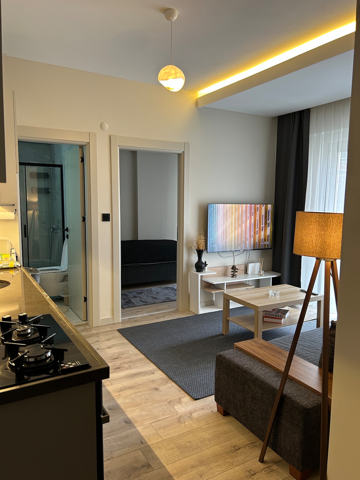 现代时尚干净2 +1豪华公寓,配备空调