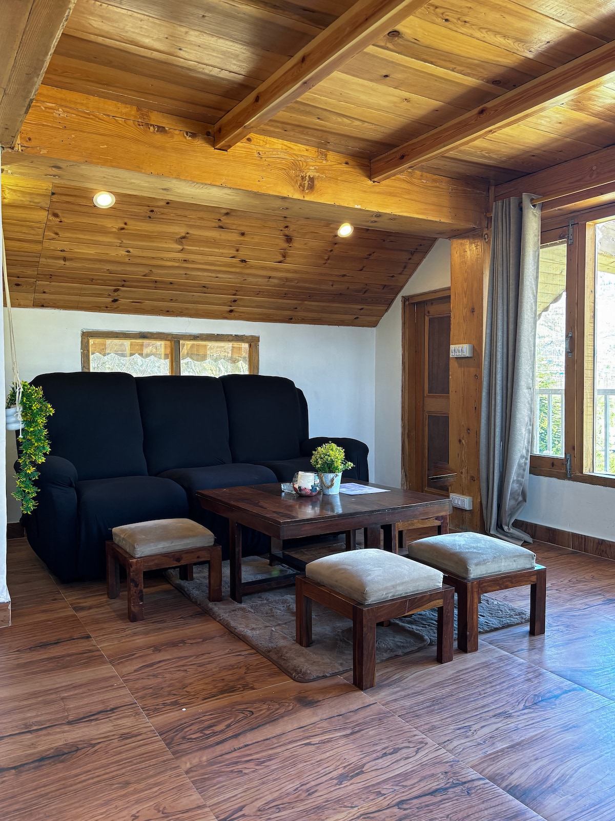 Old Stone Wood Cottage turned into a Boutique Stay. Perched at 2600 meters . Offering a 180° Panaromic View of Majestic SnowPeaks and Kullu Valley. Find Comfort in our Minimalist Chic rooms Enjoy Scrumptious Meals, Treks, Bonfire Nights, Gaze into Billions of Stars in Solace,Snow Activities. People Looking for an Peaceful escape from City Life.This is just the Place for you. A short 2min Hike from the Main road will bring you to Interlude-Pause & Reconnect. ,Making it Peaceful & Close to Nature