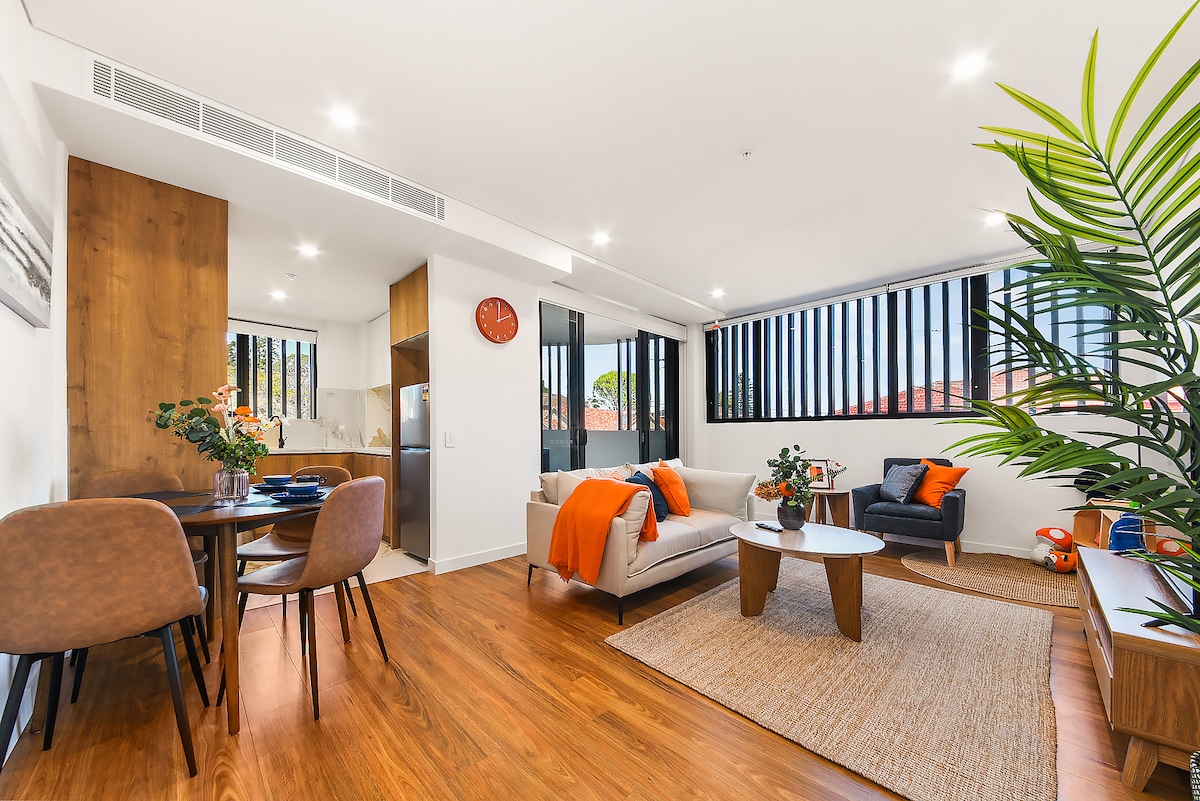 欢迎入住这间宽敞、舒适又便利的两居室公寓,是您在悉尼的理想“家外之家”。公寓位于Strathfield核心地段,步行约5分钟可达Strathfield火车站和大型购物中心,搭乘特快列车12分钟直达悉尼市中心,轻松前往奥林匹克公园、蓝山和中央海岸等热门景点。从悉尼国际, 国内机场驾车出发,约25分钟即可抵达,交通十分便捷。 公寓位于二楼(请注意:无电梯),整洁明亮,安静宜人。客厅阳光充足,连接宽敞阳台,可俯瞰拥有9个网球场的本地会所。现代化厨房设施齐全,方便您轻松烹饪美食。两间卧室均配备双人床、优质床垫和入墙衣柜,提供舒适的睡眠体验。 生活配套一应俱全,步行范围内有Burwood 火车站(约6-7 分钟)唐人街、Westfield购物中心、超市、咖啡馆与多样餐厅,无论是短期出行还是长期停留,这里都是极佳的选择。 我们希望每位入住的客人都能感受到宾至如归的体验。如您有任何特别需求,请提前告知,我们将尽力为您的旅程提供更多便利。