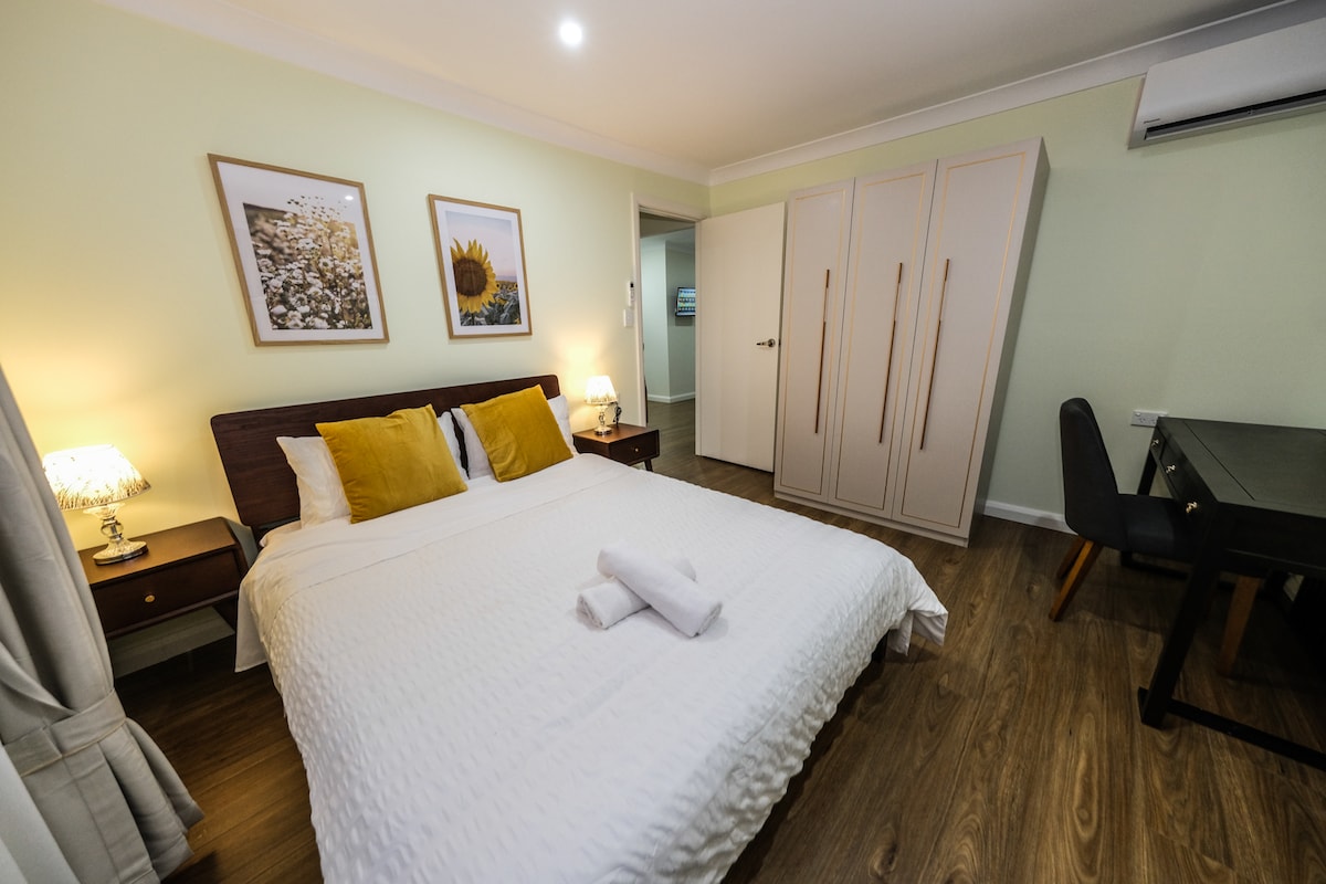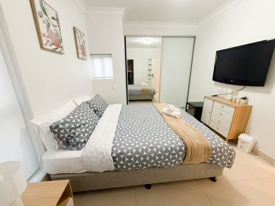 Charming, Fully Furnished 2-Bedroom Granny Flat in Croydon Park Welcome to your cozy retreat! This stylish granny flat comfortably accommodates up to 3 guests. Bedroom 1: Queen bed Spacious wardrobe Blackout blinds for a restful sleep Bedroom 2: King single bed Spacious wardrobe Convenient desk Amenities: Well-equipped designer kitchen Modern bathroom with shower and premium towels Internal washing machine for your convenience Reverse-cycle air conditioning for year-round comfort