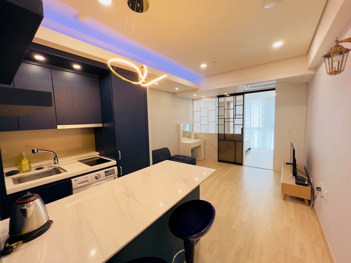 -자갈치역 바로앞. 맛집, 편의점 바로 앞에 있어요. 최고급 인테리어로 아주 깨끗합니다. -침대, 침구, 식기, TV (넷플릭스 가능)있습니다. -퀸베드 (2인용 침대 ) -캡슐커피 구비되어있습니다. -비대면 체크인 체크아웃 입니다 -드라이기, 고데기, 샴푸, 린스, 칫솔, 치약, 로션 구비되어 있습니다. -정수기.냉동고에 얼음비치 -주차는 앞 공영주차장을 이용해주세요. 주차비 유료입니다 (1일 1만원) -얼리체크인, 레이트 체크아웃은 미리 말씀해주세요 (추가요금 발생) -짐 보관 가능. 짐 보관시 미리 알려주세요