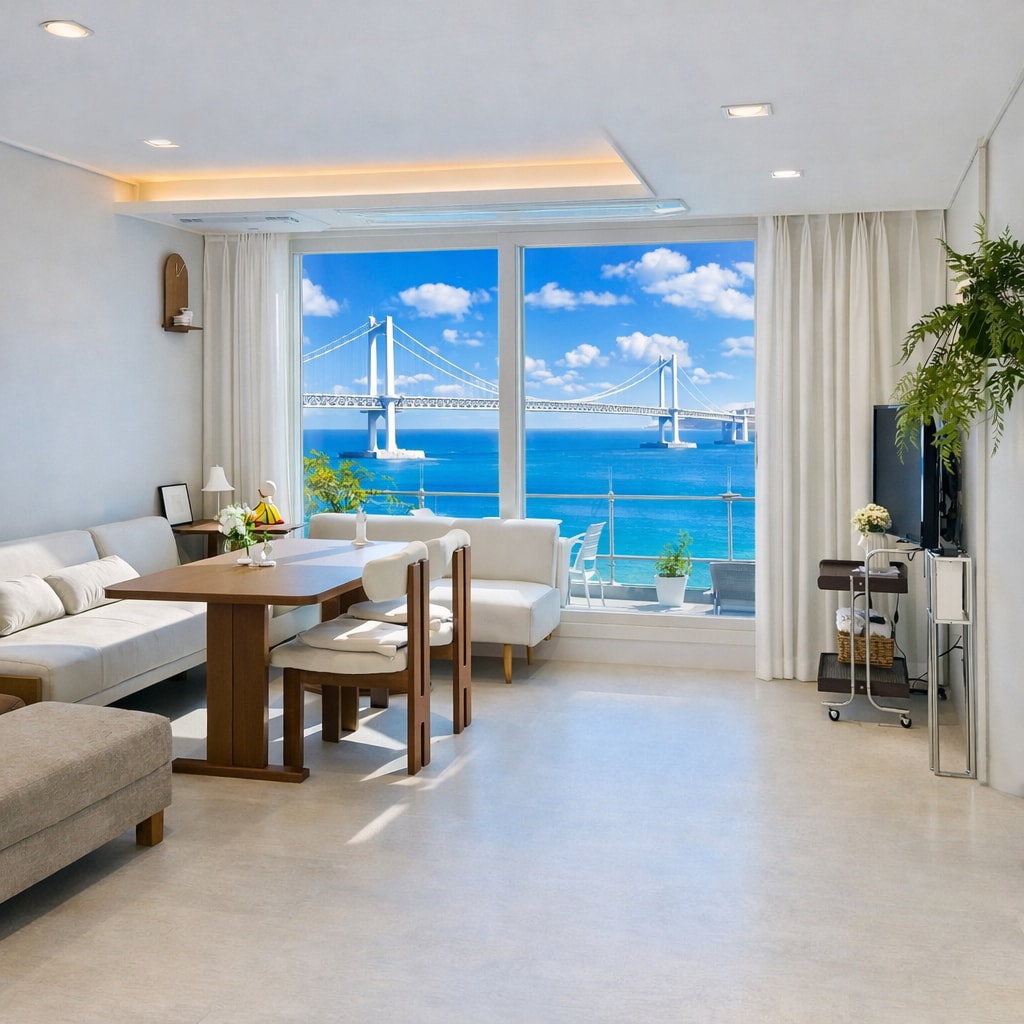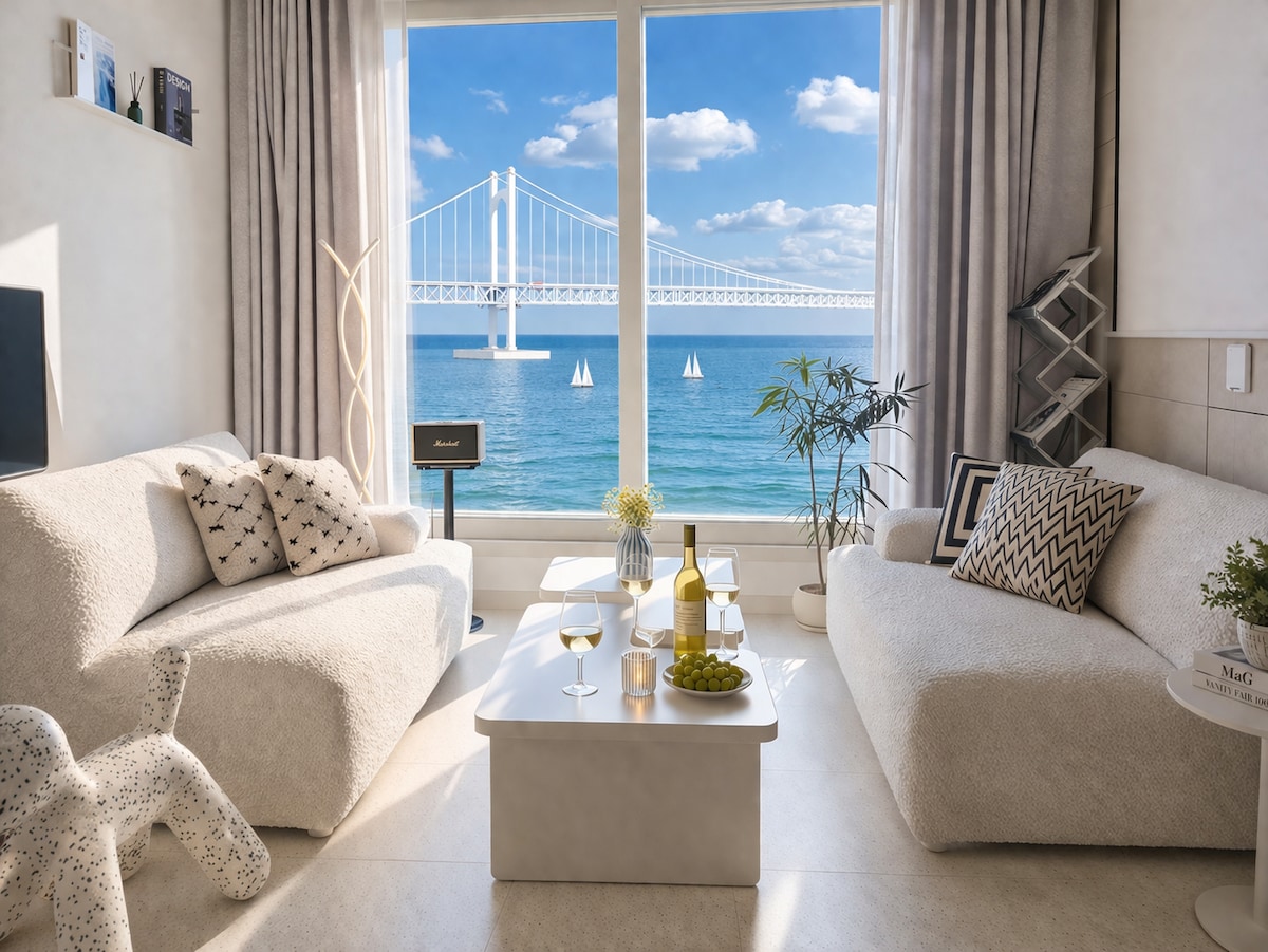[광안 시크릿 오션룸] “눈앞에 펼쳐지는 바다, 감성 속에 머무르다.” 탁 트인 창 너머로 광안대교와 바다가 펼쳐지는 오션뷰 감성 숙소입니다 📍자연광이 가득 들어오는 포근한 공간에서, 음악과 함께 여유로운 시간을 즐겨보세요. 당신만의 부산 여행을 완성해줄 공간입니다. 연인·가족·우정 여행에 딱! 광안대교 Full Ocean View 📍광안리 해수욕장 바로 앞 감탄을 자아내는 광안대교 뷰를 침실과 거실에서 동시에 누려보세요. “눈앞에 펼쳐지는 광안대교 뷰, 그리고 아늑한 휴식! 프라이빗한 오션뷰 감성 숙소에서 특별한 하루를 경험해보세요. ✔️전면 통창 바다 전망 ✔️감성 가득한 인테리어 & 마샬 스피커 ✔ 신축 아파트 광안리에서 가장 인기 있는 1등 인기숙소 ✔ 탁 트인 오션뷰 + 해운대 시티뷰 + 광안대교뷰 ✔ 감성 가득 인테리어 & 프리미엄 어메니티 ✔ 밀락더마켓 활어센터 도보 거리 📍밤낮으로 다른 매력을 선사하는 최고의 전망. 사랑하는 사람들과 인생샷을 남겨보세요.