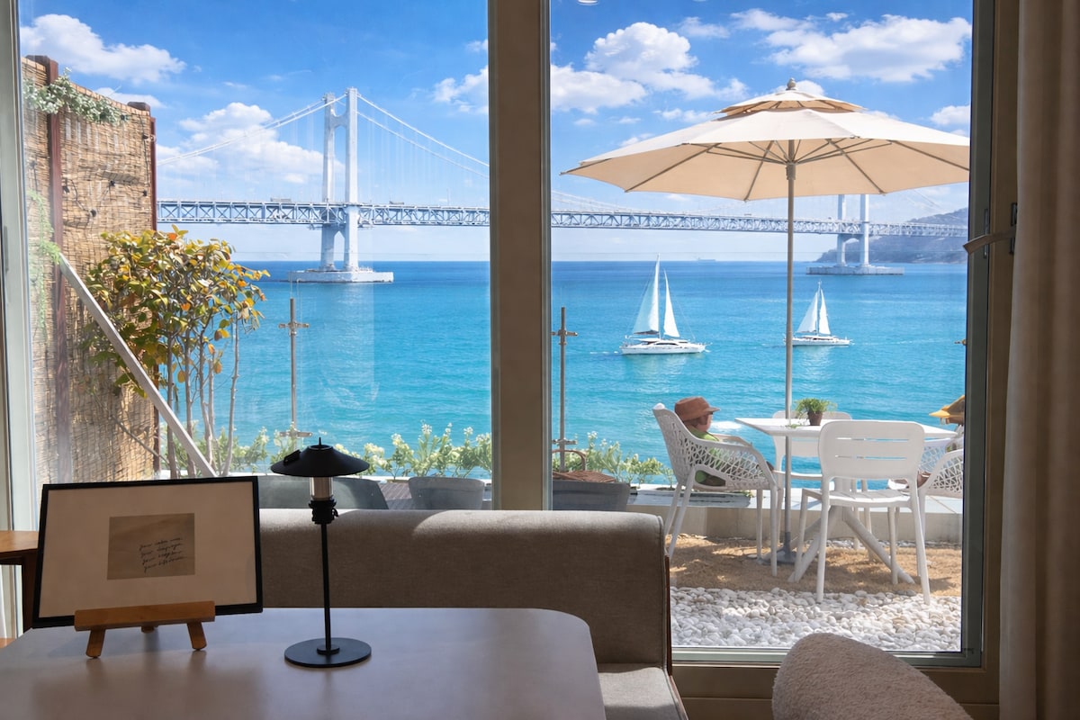 💙 블루오션 테라스 안내 🏖 광안대교 프라이빗 뷰, 광안리 해변 1열 테라스 숙소!!!👍 하루의 끝을 가장 아름답게 마무리할 수 있는 곳, 블루오션에서만 경험하세요. 🛏 침대에 누워 바라보는 광안대교 야경!! 테라스에서는 요트 불꽃놀이까지 한눈에 담기는 독점 뷰!! 🏝 창밖으로 펼쳐지는 불꽃·요트·바다 이 모든 장면이 숙소 앞에서 펼쳐집니다. 낮에는 요트와 바다, 밤에는 빛으로 물든 광안대교를 24시간 감상하세요. 🏖 "아이도, 연인도 반한 오션 테라스" 탁 트인 바다와 반짝이는 브릿지 조명 아래, 소중한 사람과 보내는 잊지 못할 하루!!! 최고의 여행이 되실거에요^^ 편안한 휴식과 특별한 추억을 동시에, 블루오션 테라스에서 힐링하세요.