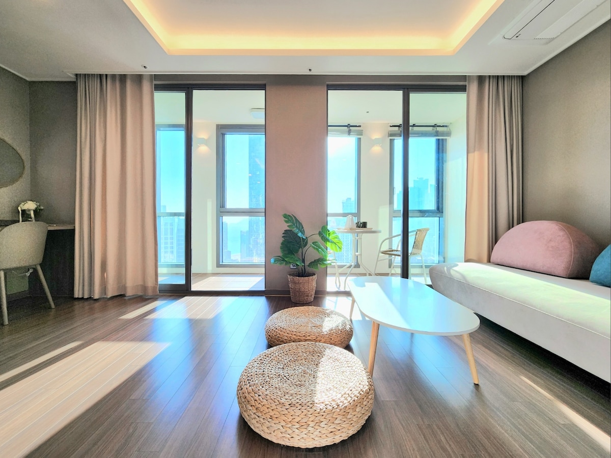【Elmomento Songdo】全新露台海景/高级胶囊咖啡/海水浴场/POS