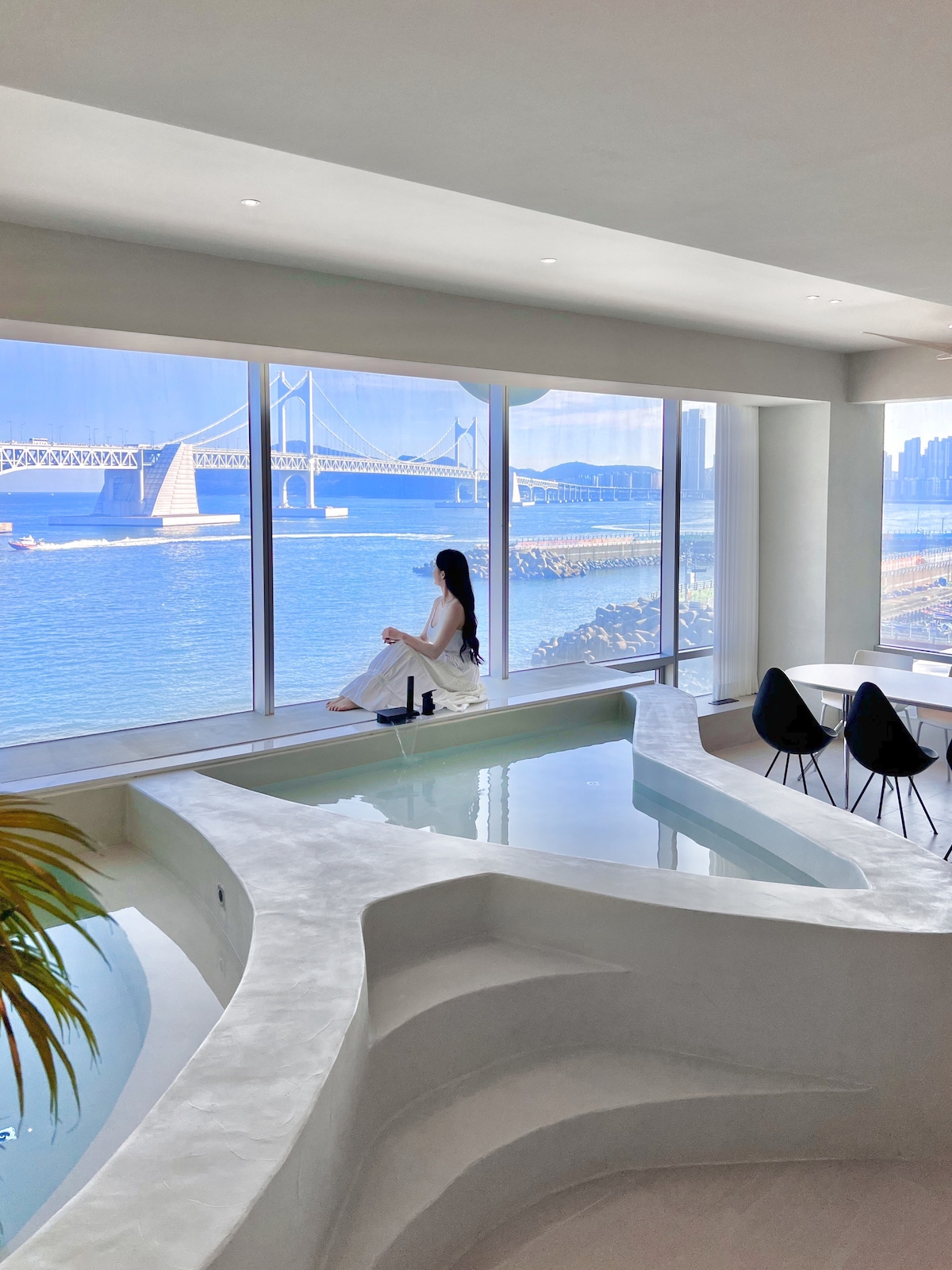 @stay8usanhang is a space overlooking Busan Port, thoughtfully designed to offer comfort and inspiration. Every detail, from music and fragrance to ambiance, interior, and bedding, has been carefully curated to enhance your stay. -Sky bridge connected to Busan Station (5-minute walk) -1 Super King bed, 3 Super Single beds Ocean-view bathtub (spa-ready) - Fully equipped / ideal for family travelers 50-inch large TV with Netflix, YouTube, OTT, and broadcast channels Bang & Olufsen speakers