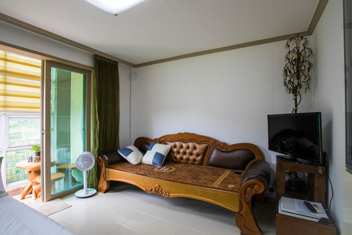 나래하우스(NARAE HOUSE) ☆ 넷플릭스 무료시청 (50인치) ☆ 예약시 바다뷰큰방과 작은방 2룸 이용 ☆ 각 방마다 출입문, 퀸침대, 씽크대, 화장실, 테이블,에어컨등이 따로 준비되어 있고 중문으로 연결되어 있습니다. ☆ 원룸2개 4인 공간이며 최대6인까지 추가예약이 가능합니다.(퀸사이즈 알집매트 2개 준비) ☆ 1룸 2인 예약가능 평일 120,000원 금요일 150,000원 공휴일 토요일 할인X ☆ 단독주택 전체를 사용하지는 않습니다. 왼쪽편 건물만 게스트하우스며 대문과 마당은 공용이고 출입문은 분리되어있습니다. 입실 : 15:00PM이후 퇴실 : 11:00AM이전 * 연박이용시 수건은 넉넉히 준비해드리며 청소는 제공하지 않습니다.(바베큐 서비스) * 10kg이하 애견 최대2마리까지 동반 가능 (배변패드2 샴푸 수건 애견그릇제공) * 숙소 바로 앞에 넓은 주차공간이 있어 편리합니다.