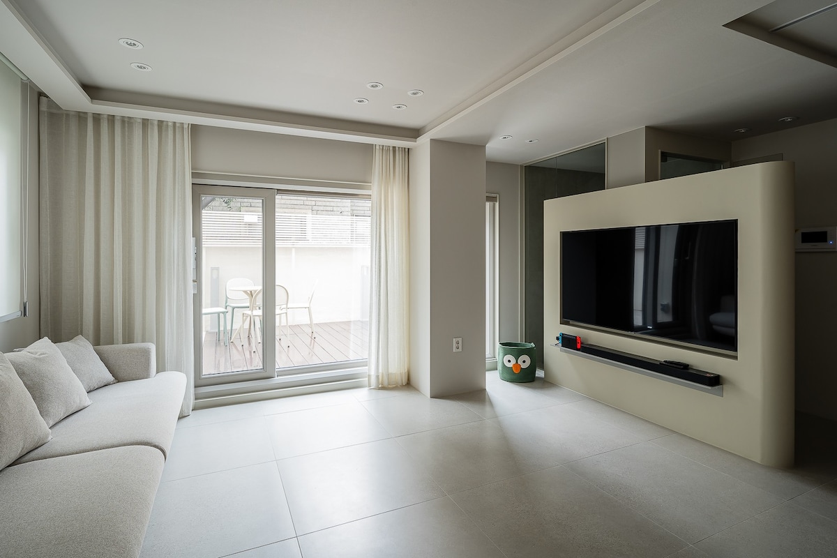 19 min walk to Haeundae Beach, in quiet hillside Haeridan-gil where Korea’s 1960s heritage meets today’s trendy cafés. A perfect spot to experience authentic Korean culture. Family-friendly Hinoki bath Single-use gardens , outside dining tables are provided. 1 Oversize King Bed+ 1 Super King Bed Quiet hillside, close to beach & restaurants Perfect base to explore Korean culture & local food Perfect for couples, families, or friends seeking culture, comfort, and relaxation near Haeundae.