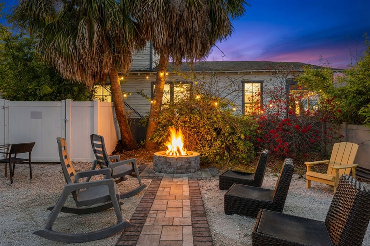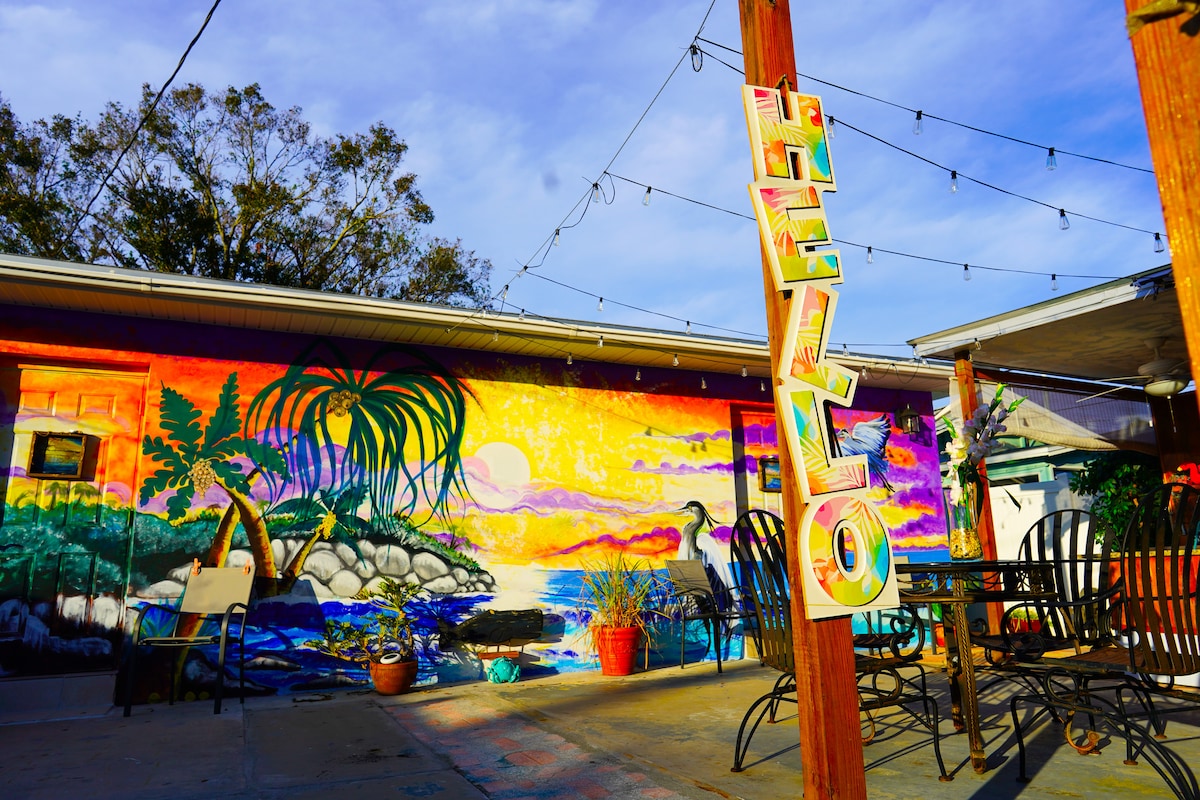 Centrally located, safe & desirable neighborhood by Hillsborough River. Corner lot, Free covered parking, easy self checkin, Bohemian style decor & vibe, stocked kitchen, SMART TVs, Laundry Rm, Fireplace. Outside Fire Pit, Picnic Table w/BBQ Grill, Hammock. Close to Lowry Park Zoo, Downtown/Convention Center, Riverwalk, Armature Works, Ybor City, Busch Gardens, Hyde Pk, Midtown, Airport, Beaches & More. Perfect for Vacation, Romantic Getaways, Family Visits, Concerts, Hockey/Football, & Work.