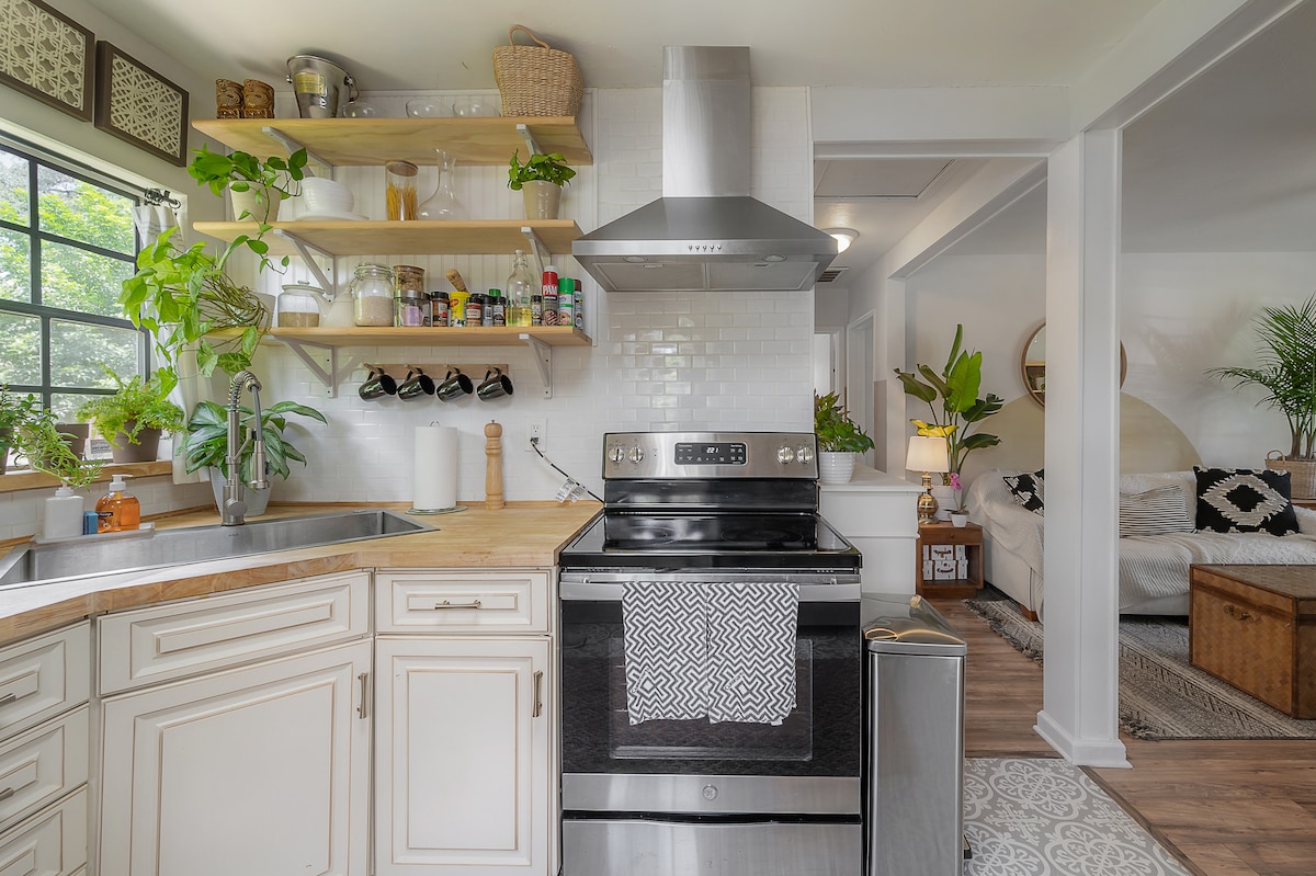 Our guesthouse is fenced in our backyard & there is a dedicated parking space on the right side of the driveway. Inside there is a fully equipped kitchen with new Samsung appliances, full size washer & dryer, a comfortable Queen size bed, en suite bathroom, Roku TVs, fast internet. I love the atmosphere in my neighborhood; you will find local & specialty stores (bakeries, vintage clothes, vinyl records, breweries), mix of cultures, the architectural style of the old city and a central location.