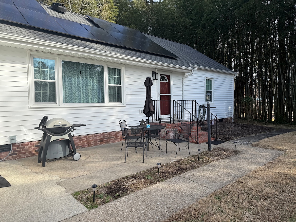 Find your home away from home when visiting historic Williamsburg. It feels very private here nestled amongst the bamboo and trees. This is a great location for families with children! We are within 5 minutes of Bush Gardens and Water Country for great family fun outings! For history buffs, we are 7 minutes from Colonial Williamsburg, 15 minutes from Jamestown Settlement and 20 minutes from Yorktown Battlefields. Enhance your stay with a relaxing herbal massage at the on site massage studio!