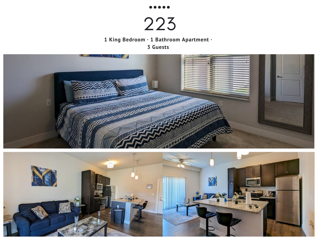 The Meridian is a gorgeous, tastefully designed 1BR/1BA loft with 12’ ceilings + bright 7’ steel-frame windows, and a fully equipped kitchen. Kick off your stay with a fresh-brewed latte and a bite from the mini market downstairs. Spend the afternoon lounging in the sun by the pool, or challenge your friends on the rooftop game terrace. Grill up some dogs at sunset and take a short Uber to the stadium for a Cards game, or class it up with steaks at Carmine’s and a show at the famous Fox Theatre