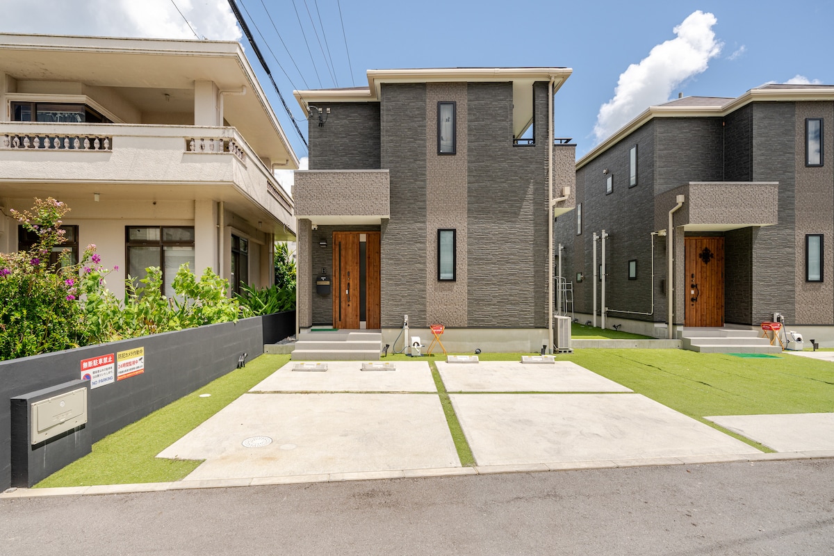 距離海灘步行1分鐘!免費停車位!名護市中心!日系現代風格房屋,歡迎家庭入住。