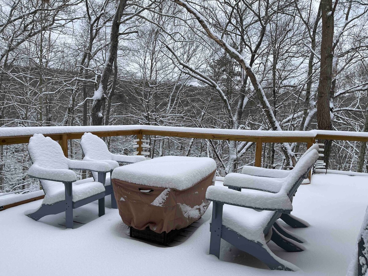 Poconos乡村风格的原木小屋,热水浴缸,小溪,滑雪