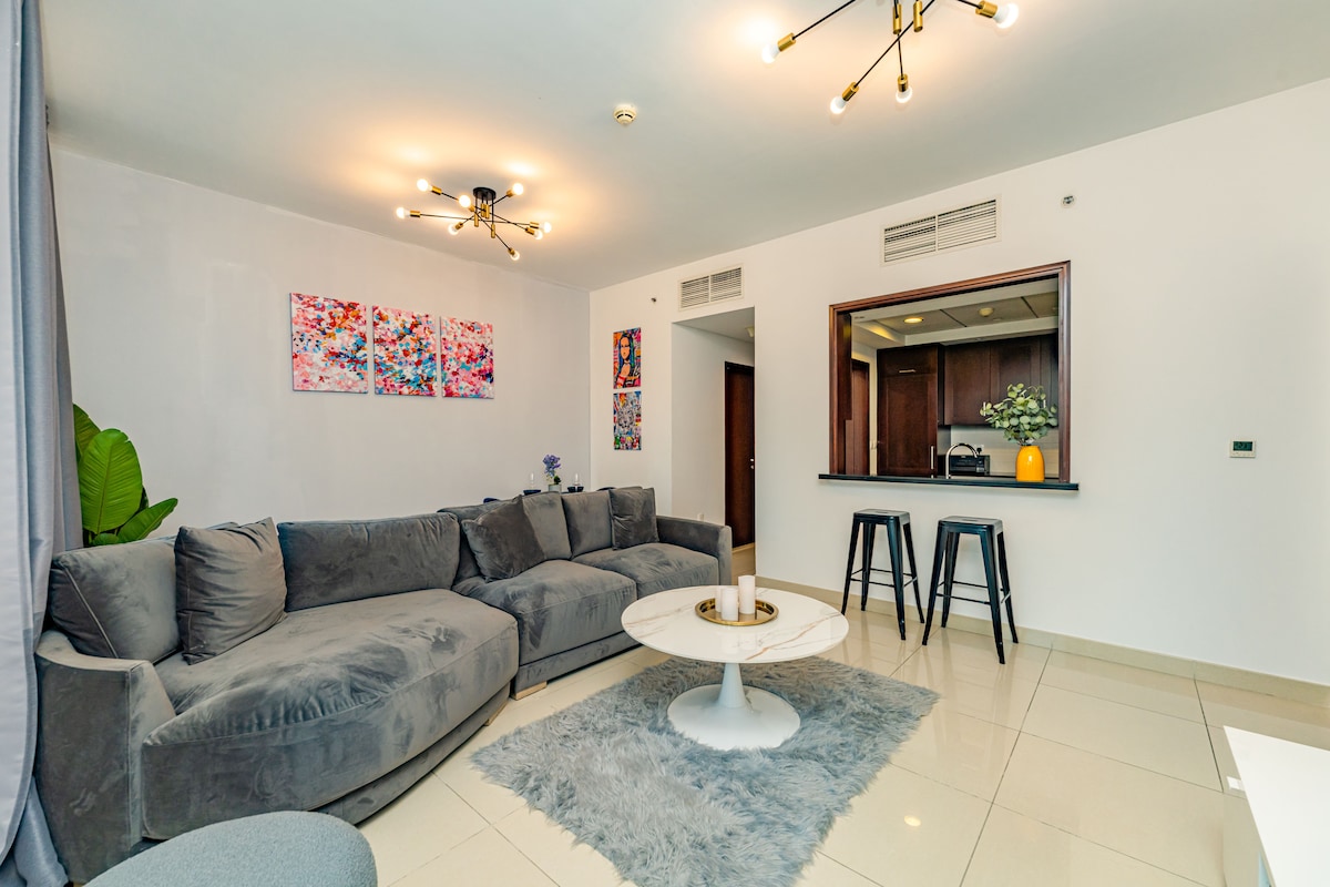 This gorgeous two bedroom apartment is meticulously built to make you feel at home, extravagant and elegant. It is situated in Dubai's most popular and central district, Business Bay. The apartment includes a fully equipped kitchen, a dining area, a modern and pleasant living room with smart tv, two bedrooms with comfortable queen-bed size and a furnished balcony with Burj Khalifa view. This apartment is ideal for people who want to experience modern stays.