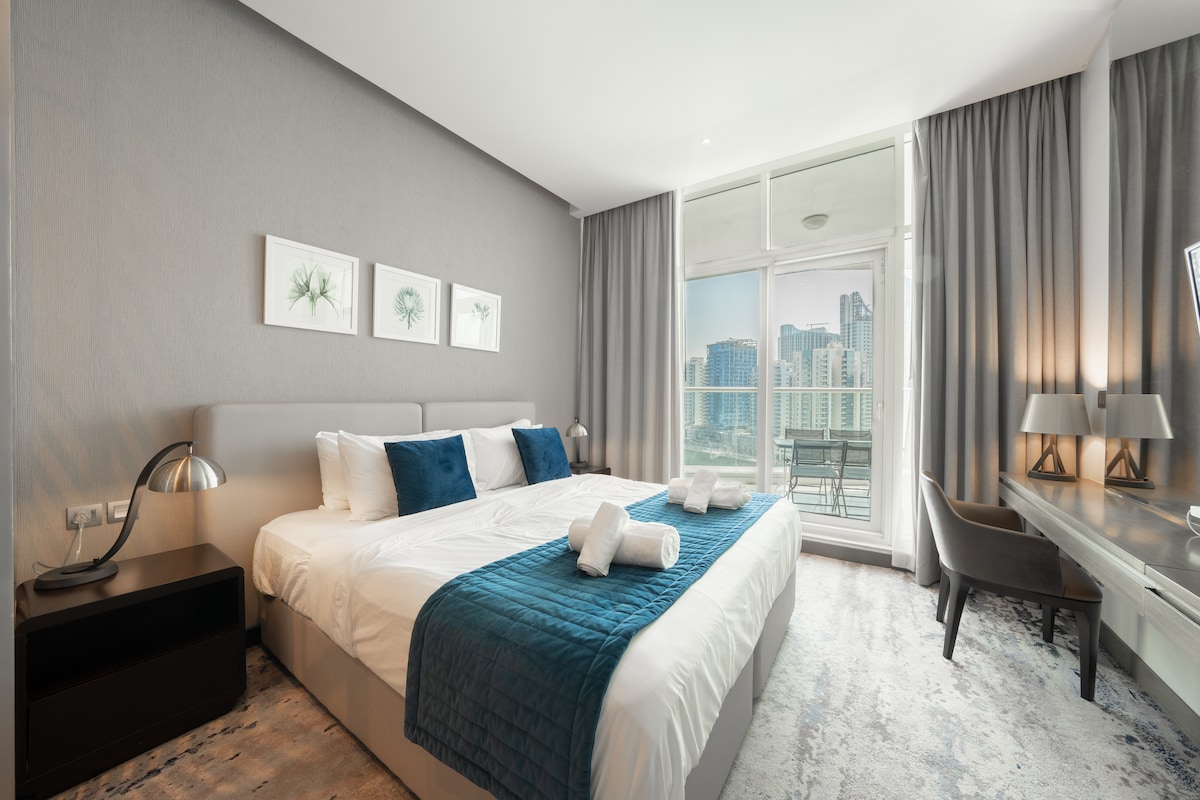 位于Damac Prive的舒适单间公寓,可欣赏运河景观
